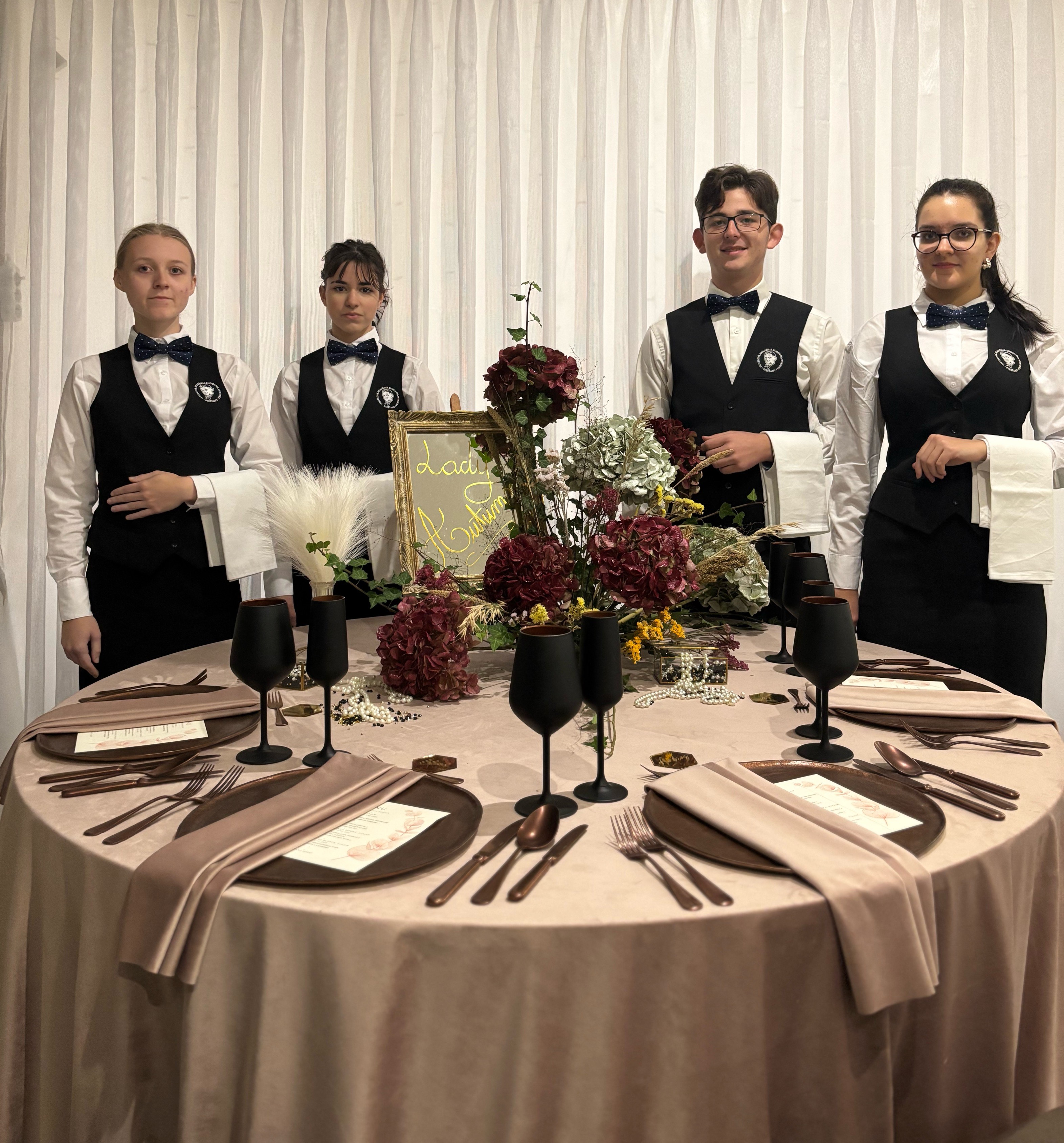Pod vedením svojich pedagógov vytvárajú originálne koncepty stolovania – od výberu farebných kombinácií, kvetinových dekorácií, až po precízne usporiadanie príborov a pohárov podľa zásad gastronomického protokolu. Táto aktivita je dôležitou súčasťou praktickej prípravy našich študentov. Umožňuje im rozvíjať nielen odborné kompetencie, ale aj estetické cítenie, tímovú spoluprácu a prezentačné schopnosti – teda zručnosti, ktoré sú nevyhnutné pre úspešné pôsobenie v modernom hotelierstve a gastronómii.