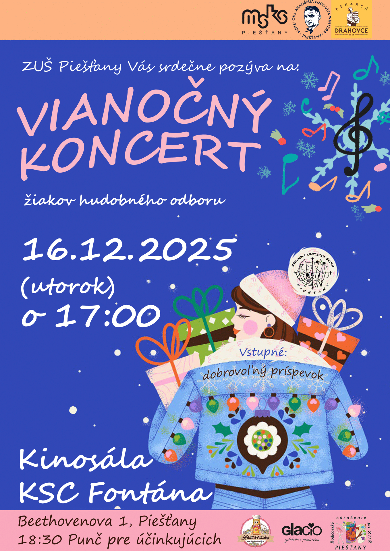 Želáme všetkým žiakom ZUŠ a ich učiteľom krásne prežitie vianočných sviatkov a veľa hudobných úspechov v roku 2026!