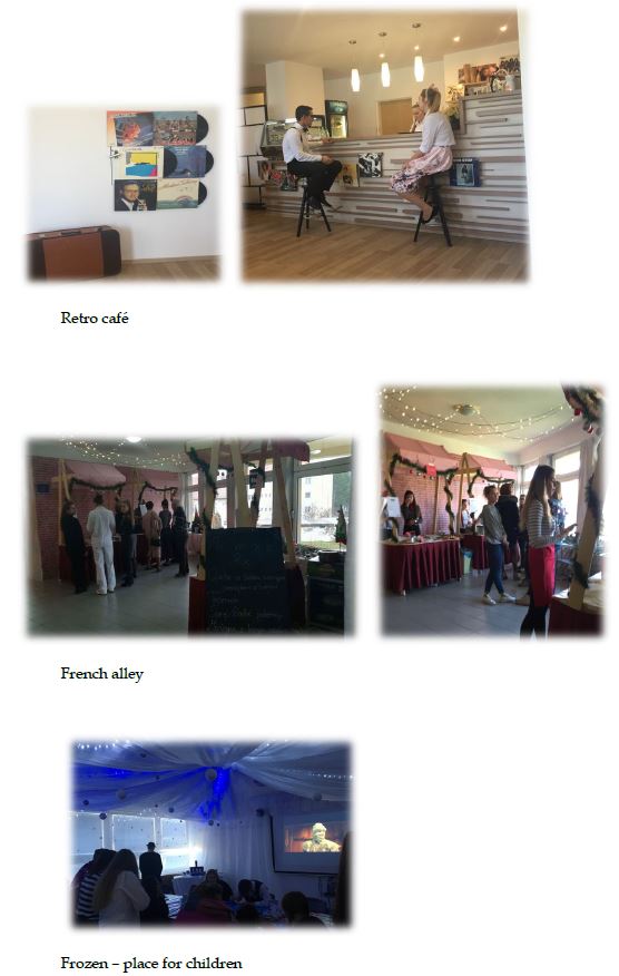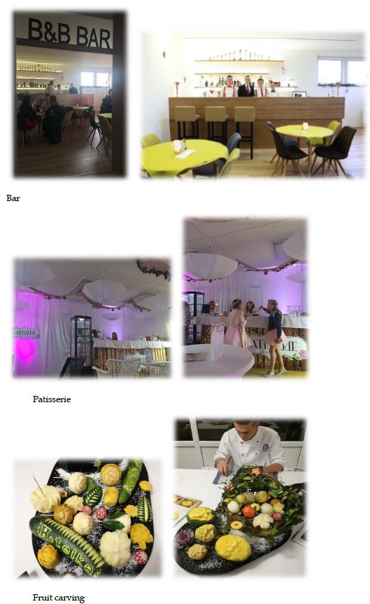 Teachers and students worked hard because they wanted to present our school and our gastronomic skills to the public. Classrooms were transformed into cafés, restaurants, bars, bakeries, taverns, tea room and shops. You could have visited and tried stands full of tasty meals, sweets, cakes, chocolate or you could experience various demonstrations of students´ skills.