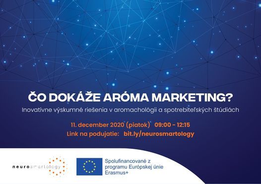 Zúčastnite sa aj Vy podujatia Čo dokáže aroma marketing? Inovatívne výskumné riešenia v aromachológii a spotrebiteľských štúdiach. Podujatie sa koná 11. decembra 2020 od 9.00 - 12.00 Link na podujatie: bit.ly/neurosmartology2020