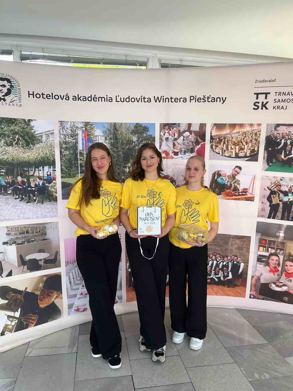Dňa 18.apríla 2024 sa konal 28.ročník charitatívnej zbierky Ligy proti rakovine - Deň narcisov. Všetci sme mali znova príležitosť prejaviť podporu myšlienke boja proti rakovine. Aj na našej škole sme vyberali príspevky a darcov sme odmenili žltým narcisom, ktorý symbolizuje nádej a spolupatričnosť s tými, ktorí bojujú s rakovinou.