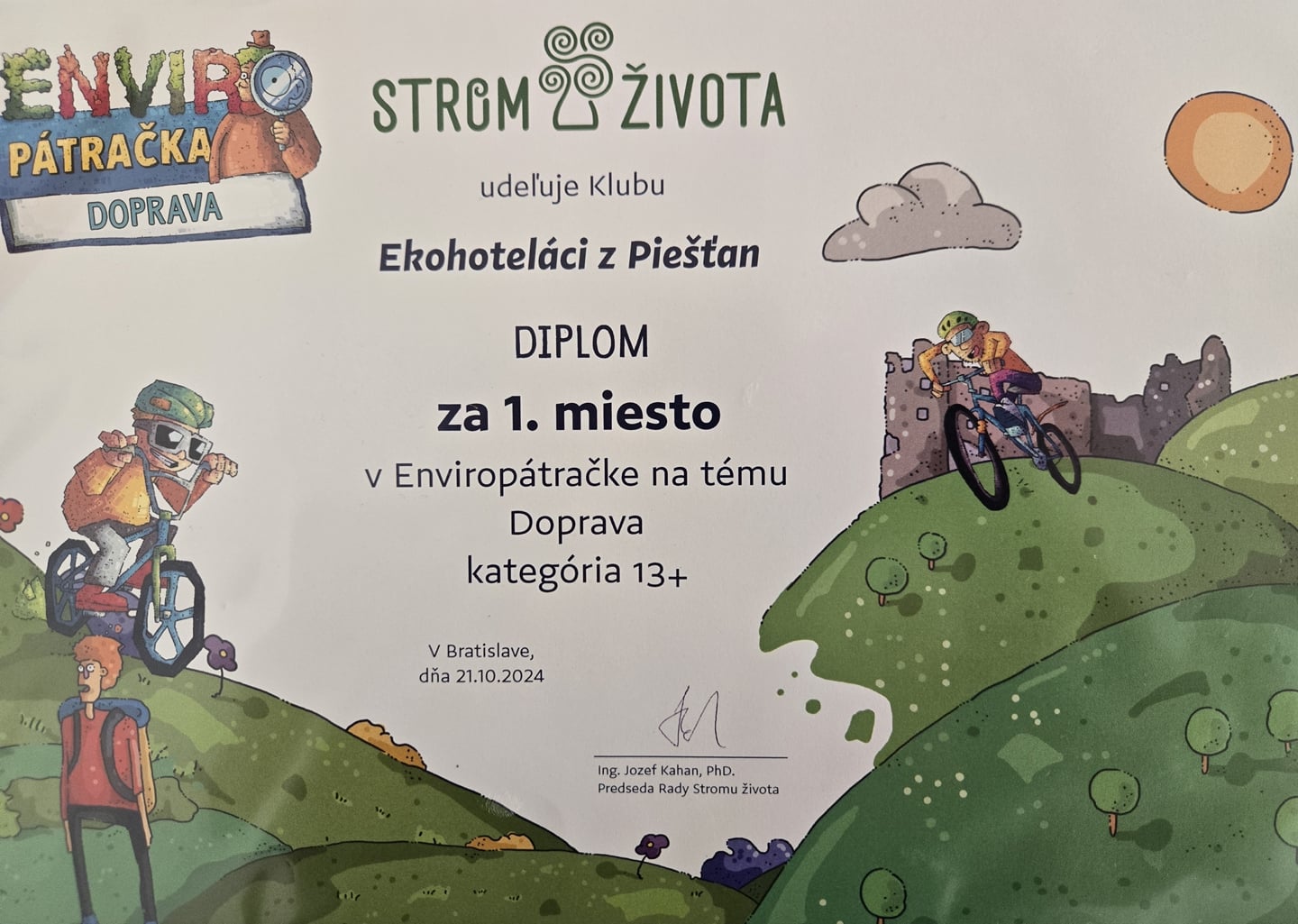 Cieľom súťaže s názvom „Doprava“ bolo poukázať na dopad dopravy na životné prostredie. Ekohoteláci tvorili videá, vymýšľali básne, navrhovali dopravné prostriedky budúcnosti, hodnotili aktuálne stavy verejných komunikácií v mestách, merali hluk pomocou aplikácie, ... Zisteniami sa niečo nové naučili, dozvedeli sa rôzne skutočnosti, ktoré je potrebné zmeniť, aby bol život v mestách pokojnejší, bezpečnejší, zdravší a celkovo pre všetkých lepší."