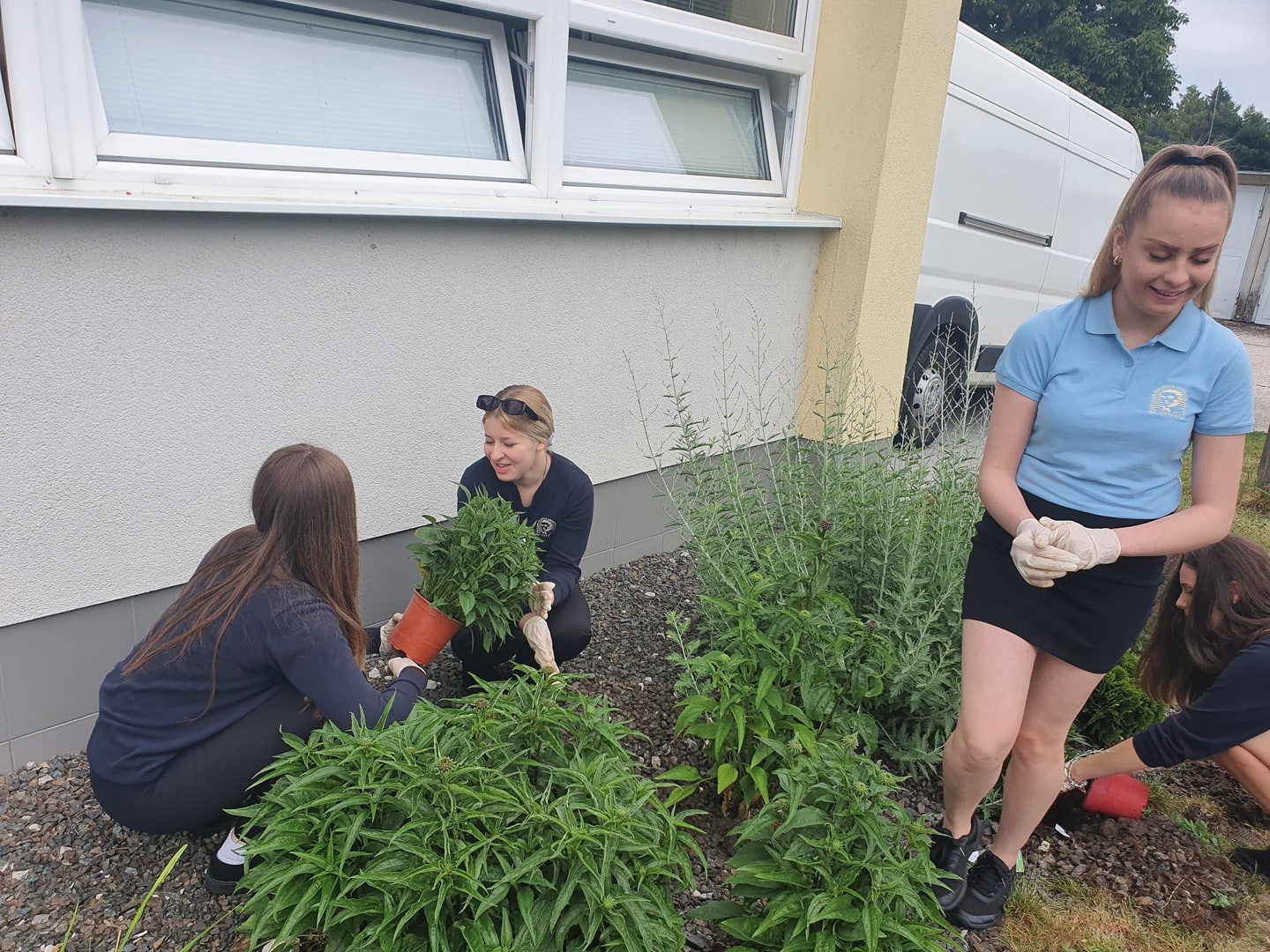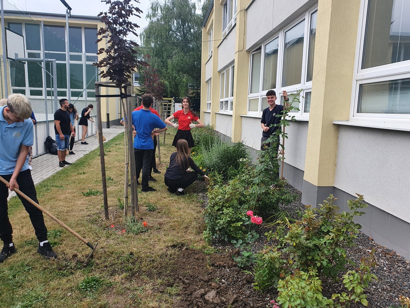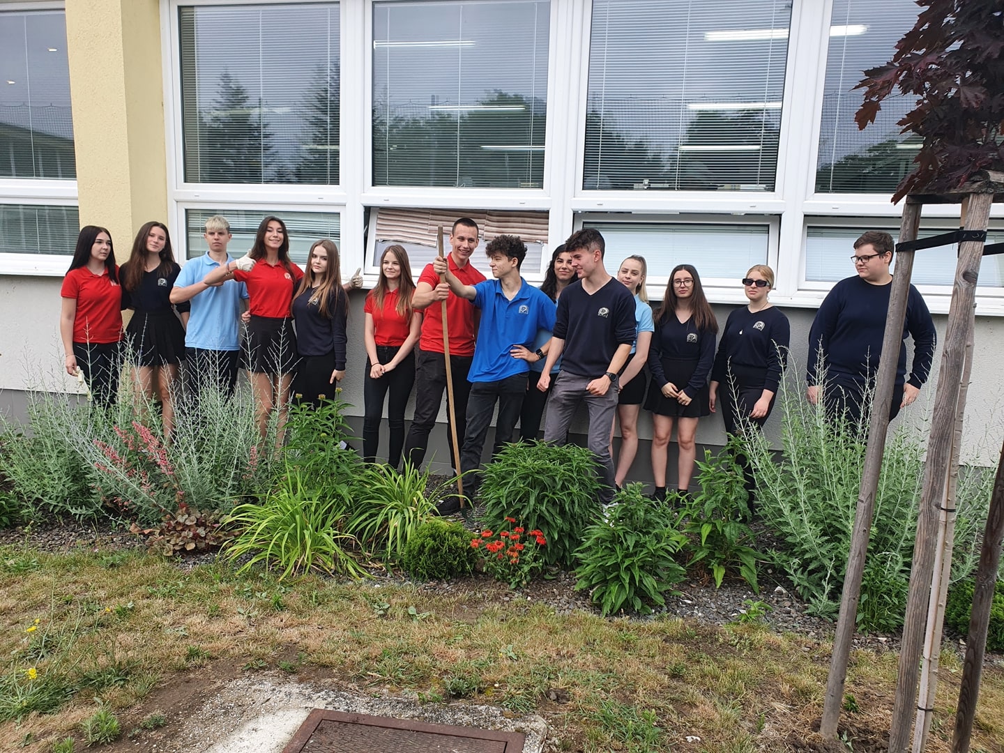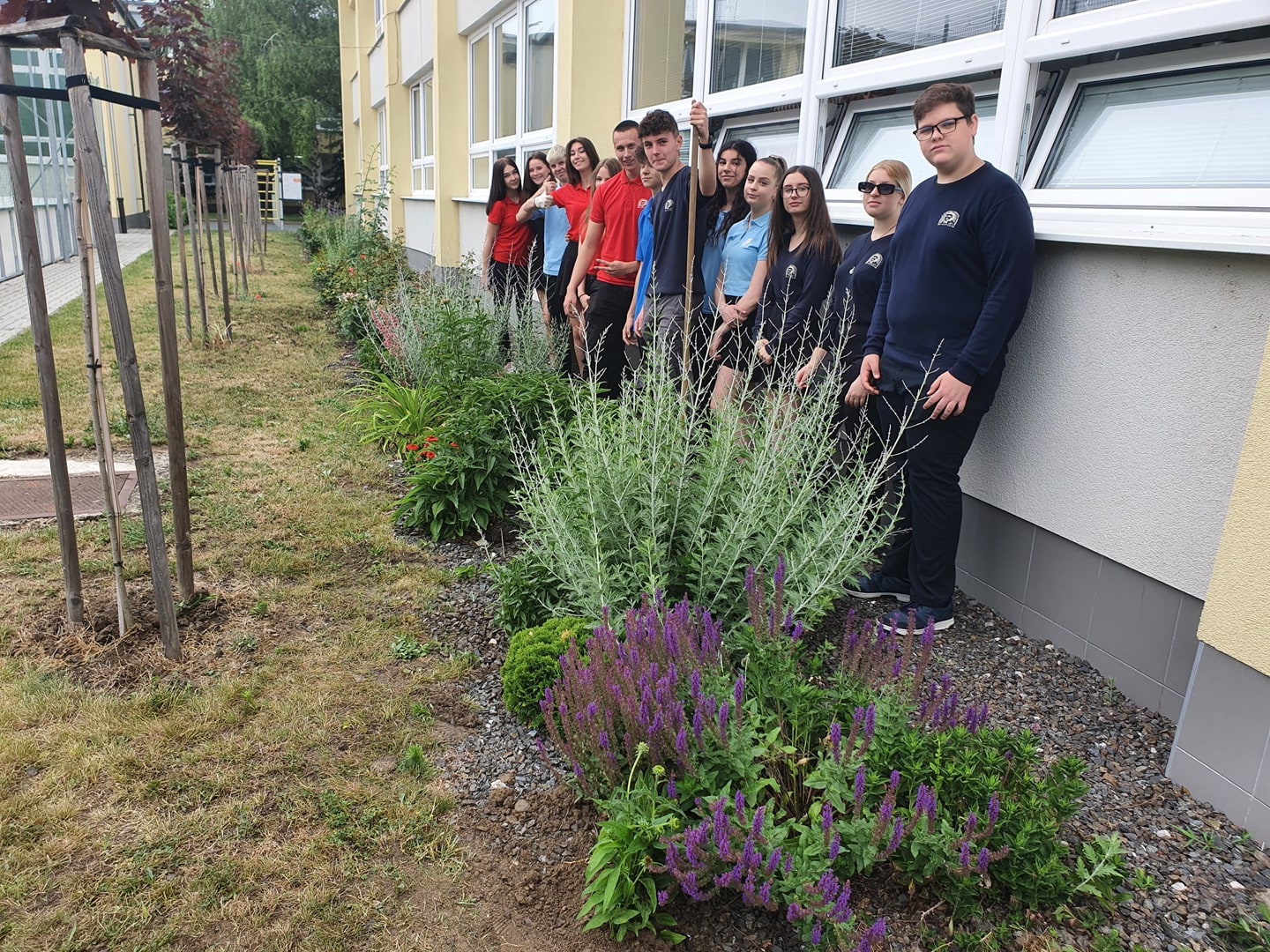 V areáli našej školy sa nachádza 10 včelích úľov. Včely sú rozhodujúce pre zdravie ekosystému Zeme a zohrávajú dôležitú úlohu pri zachovaní biodiverzity. Chceme u nás v záhradnom areáli pre ne vytvoriť správne prostredie. A práve preto sme vysadili rôzne druhy kvitnúcich trvaliek, aby sme prilákali medonosné či samotárske včely, čmeliaky, motýle ale aj iný užitočný hmyz, ktorí sú nenahraditeľnými pomocníkmi v záhradách. Bez ich prítomnosti je oveľa menšia úroda ovocia a zeleniny, keďže včely medonosné majú pri opeľovaní najväčší až 80% podiel.