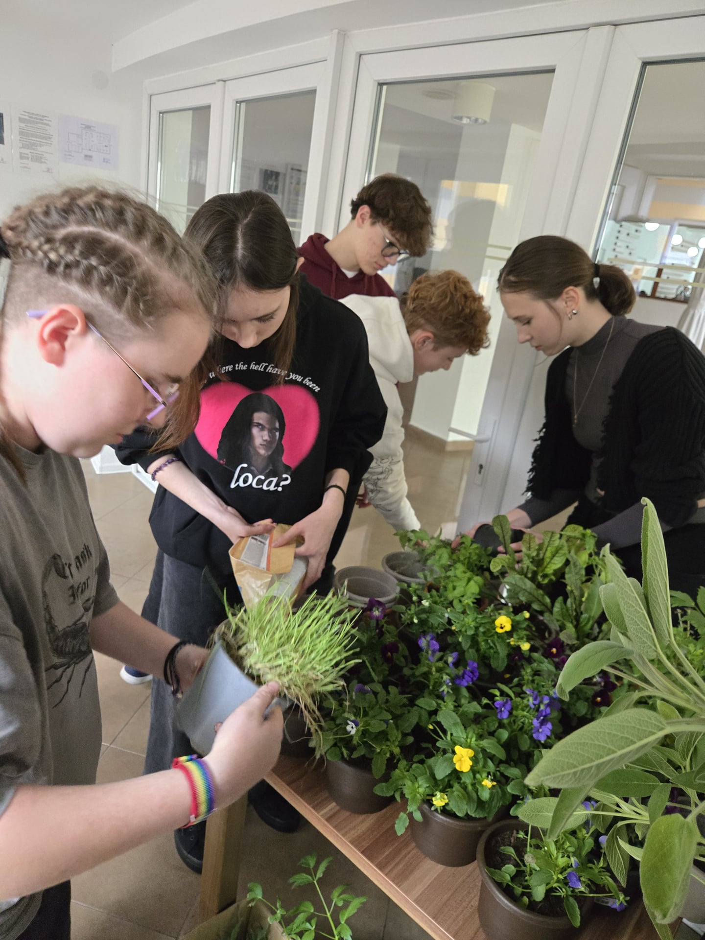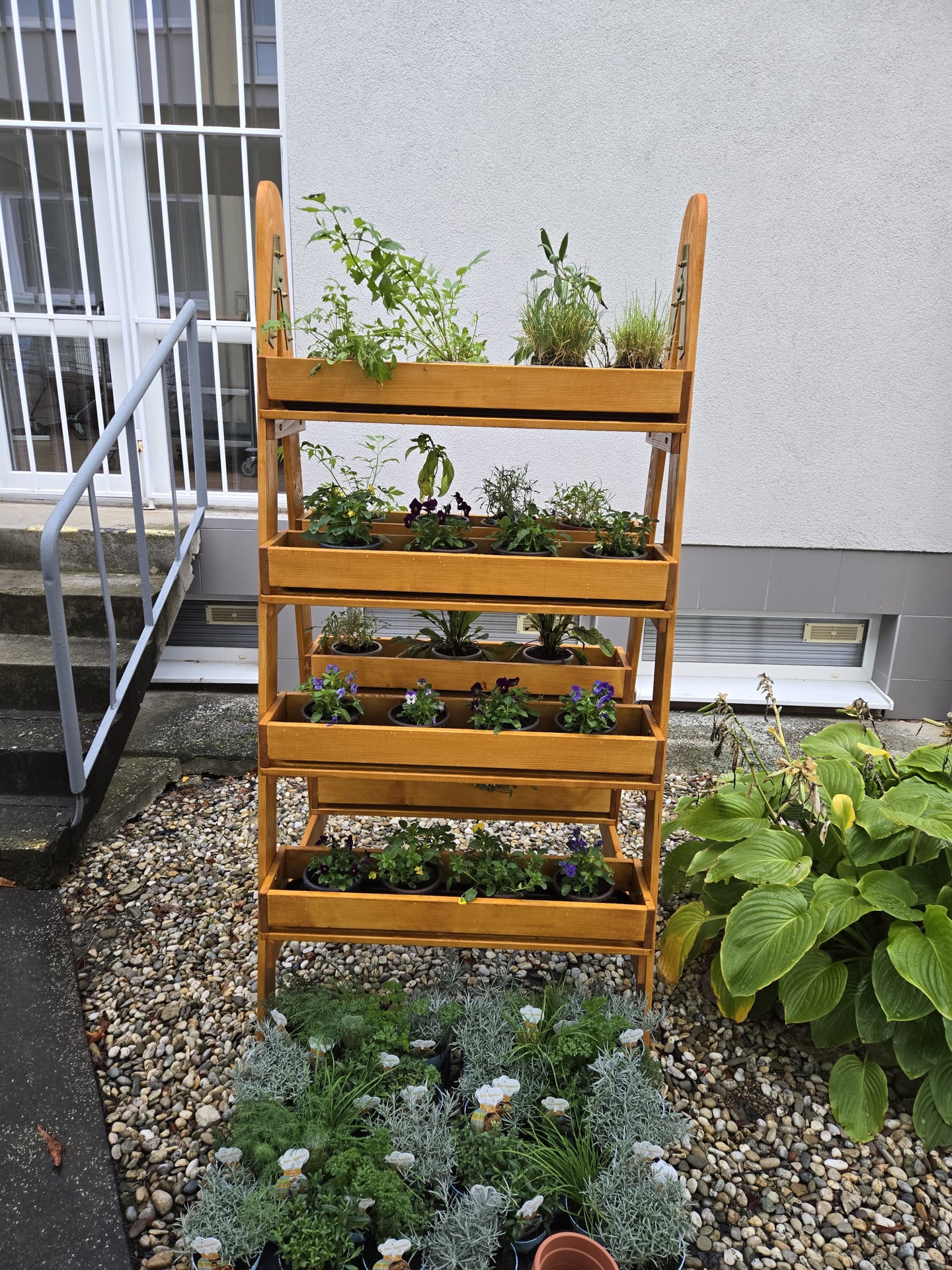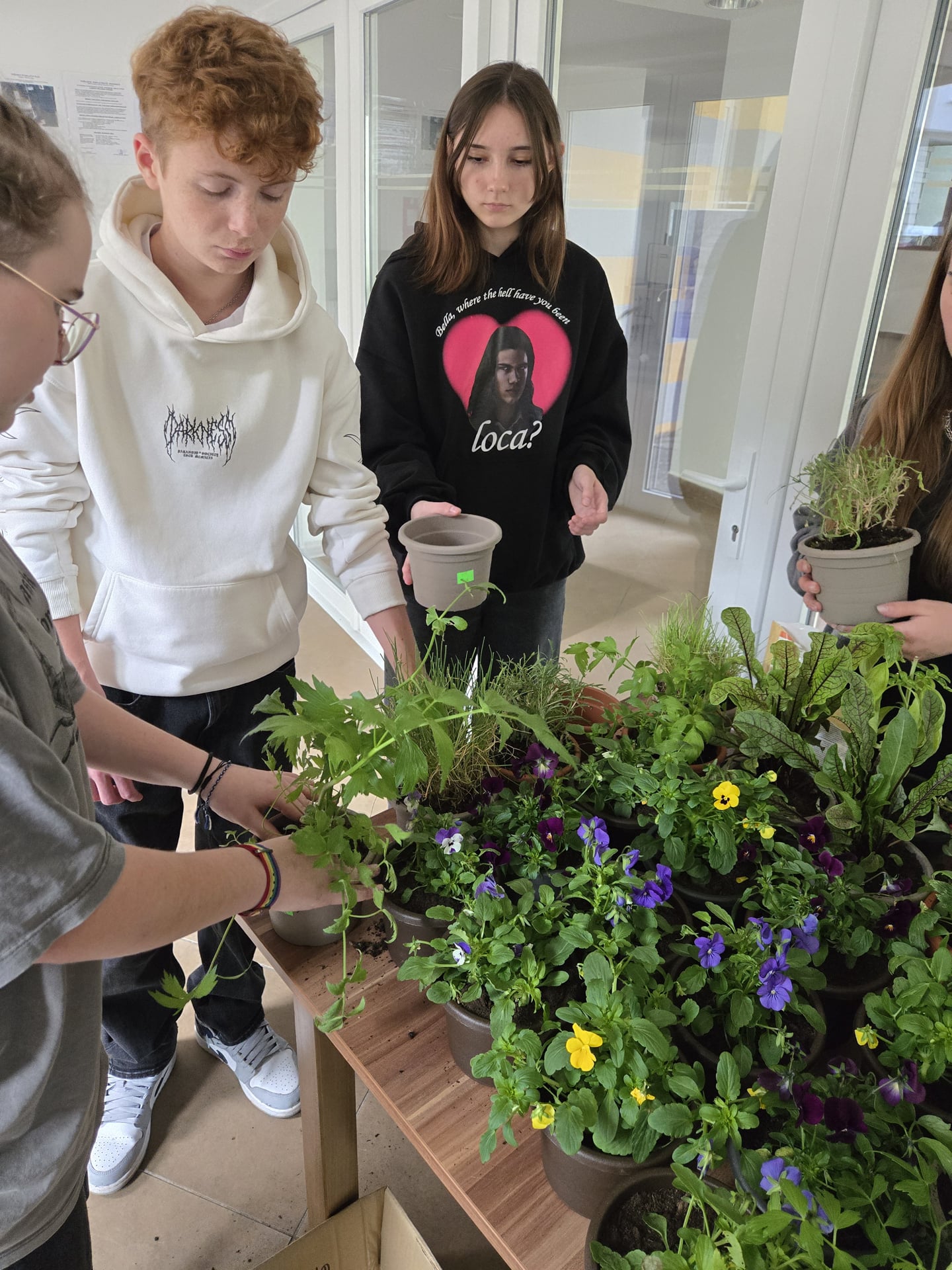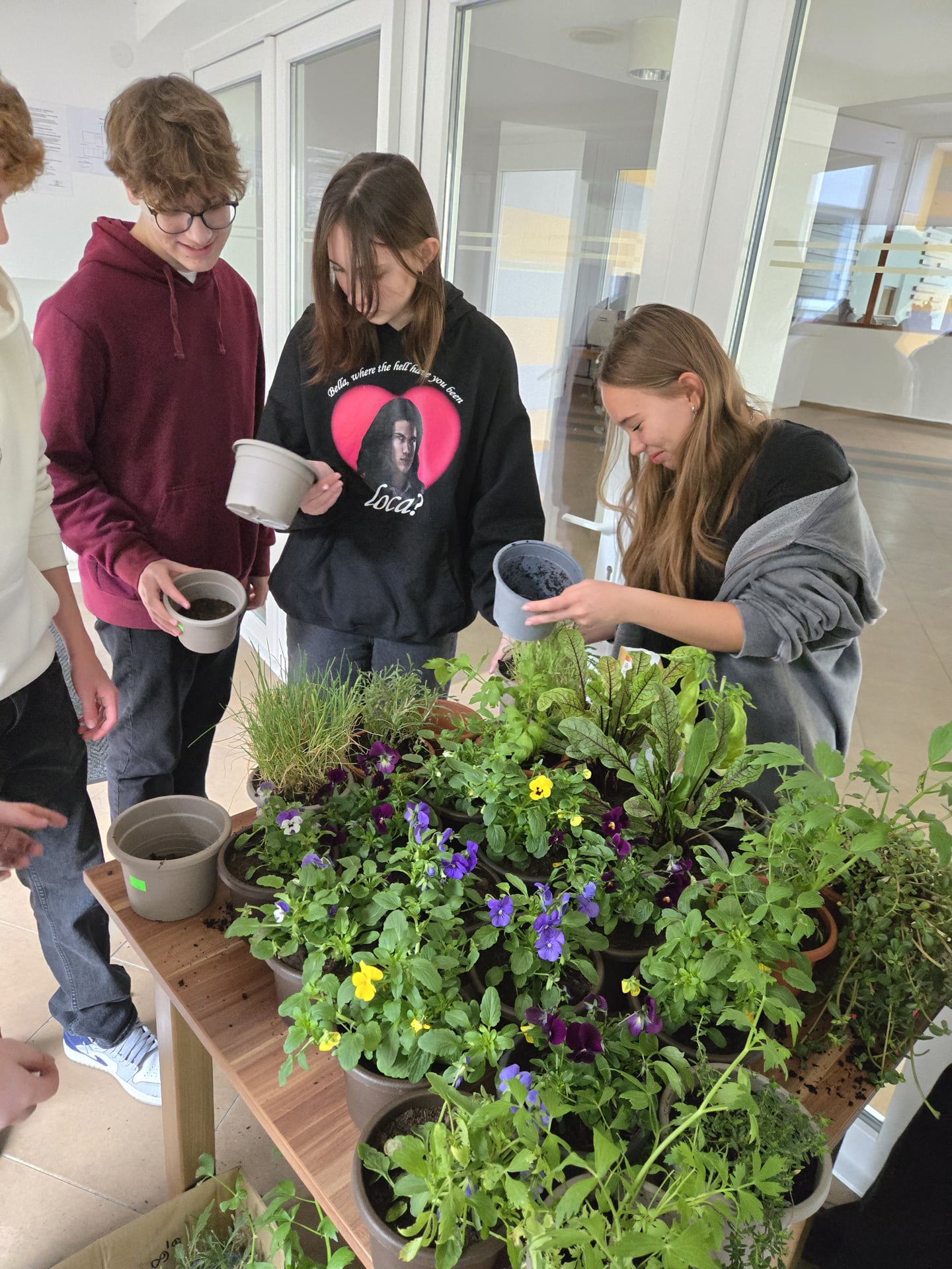Cieľom nášho projektu bola výsadba jedlých rastlín a byliniek do stojanového dreveného rebríkového kvetináča v záhradnej časti areálu školy. Výsadba prebiehala výmenou kvetináčov z pôvodných do väčších, doplnením zeminy do kvetináčov, pridali sme aj mykorhízne huby, ktoré sa napoja na korene sadených byliniek a jedlých rastliniek. Mikorhízne huby budú postupne rásť, čerpať živiny z pôdy a podporovať rastlinky počas ich celého života. Nasledovalo premiestnenie byliniek do dreveného rebríkového kvetináča a finálna zálievka. Vysadili sme tieto bylinky - kôpor, byzalku, kari, saturajku, tymián, petržlen, paštnák, medovku, pažítku, trebulku, jedlé kvietky,... Okrem úžitkovej a vzdelávacej funkcie výsadba vytvorila farebne príjemné a voňavé prostredie.