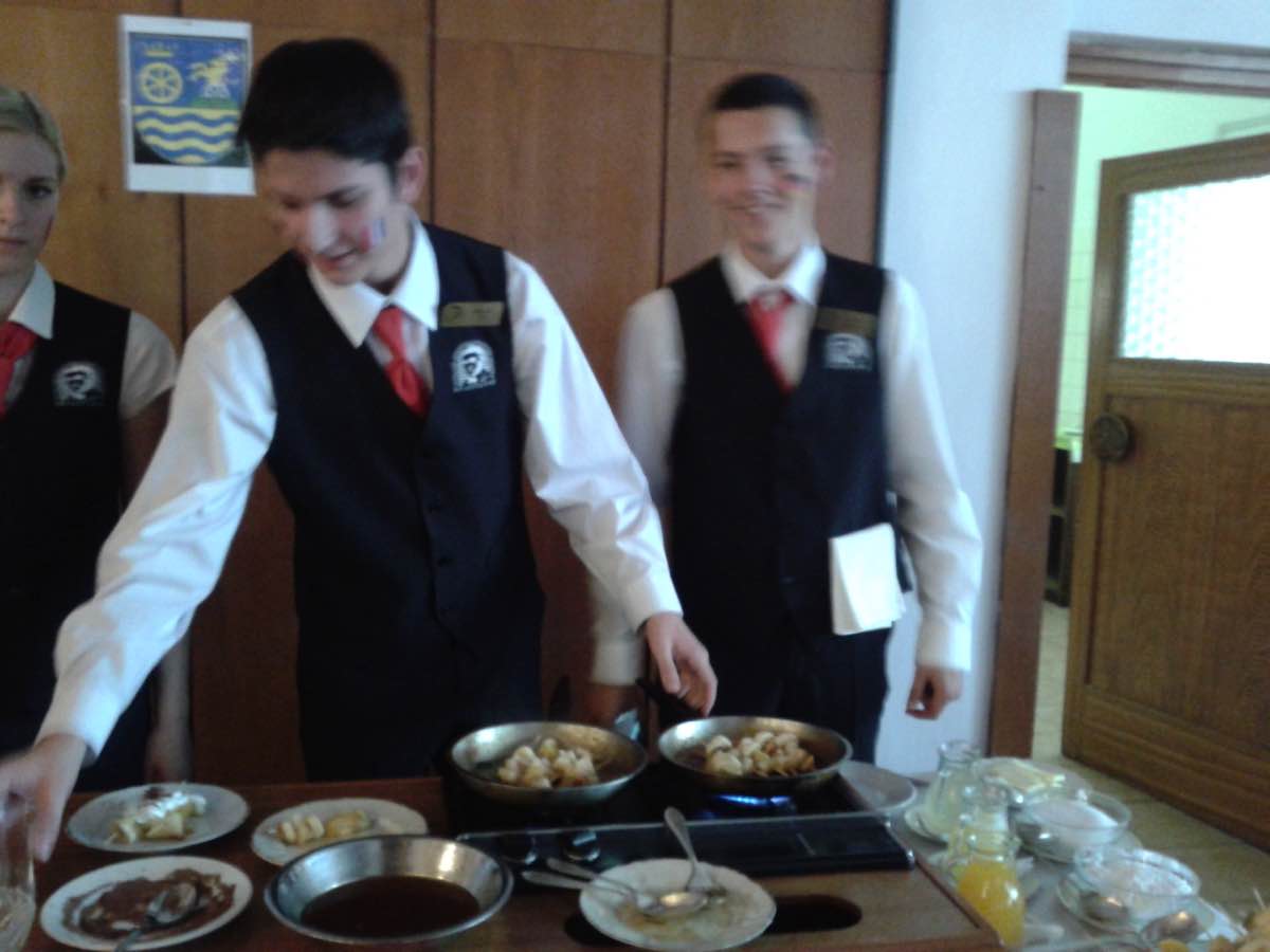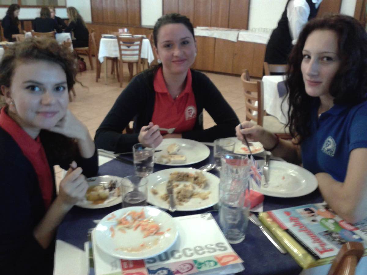 U nás si tento deň pripomenuli najmä žiaci 3.D a 2.A VOŠ. Prispôsobili výzdobu jedálne aj výzor tvárí, ktoré boli pomaľované vlajkami. Študentom a pedagógom ponúkli možnosť "učiť sa" aj počas obednej prestávky. Zvolili idiomy - ustálené slovné spojenia, ktoré keď cudzinec zvládne, možno povedať, že zvládol cudzí jazyk. V tento deň sa podľa hlavného hesla obsluhovalo v jedálni v anglickom jazyku. Here you are, enjoy your meal, thanks very much.... týmito a podobnými frázami sa pokúšali podnietiť aj ostatných spolužiakov k tomu, aby angličtina vyšla spoza stien miestností, v ktorých sa každý deň vyučuje a stala sa bežnejšou formou komunikácie, ktorú študenti iste ocenia počas zahraničnej praxe. Potešil ich záujem spolužiakov i vyučujúcich, ktorí ich snahu ocenili pochvalou.