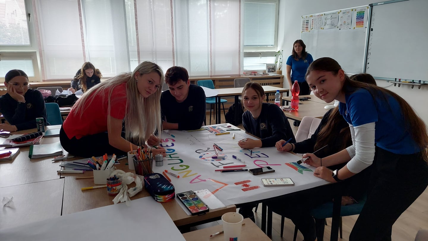 Od roku 2001 je 26. september vyhlásený za Európsky deň jazykov. Naša škola každoročne pripravuje v tento deň aktivity podporujúce výučbu cudzích jazykov. Tento rok si učitelia pripravili tvorbu plagátov s mierovým posolstvom v 5 cudzích jazykoch na rôznych jazykových úrovniach a študenti si takouto zábavnou formou precvičovali najmä komunikačnú zručnosť. V pavilóne jazykov boli pripravené tvorivé dielne a počas vyučovania mali učitelia možnosť prísť so svojimi triedami a zapojiť sa do tejto aktivity. V učebniach i na chodbe bolo rušno a veselo a ozývala sa v nej angličtina, nemčina, francúzština, taliančina či ruština od prvej po šiestu vyučovaciu hodinu. Tešíme sa, že náš Európsky deň jazykov 2024 mal pozitívnu odozvu, a dúfame, že aj ďalšie dni jazykov budú tvorivé a radostné.