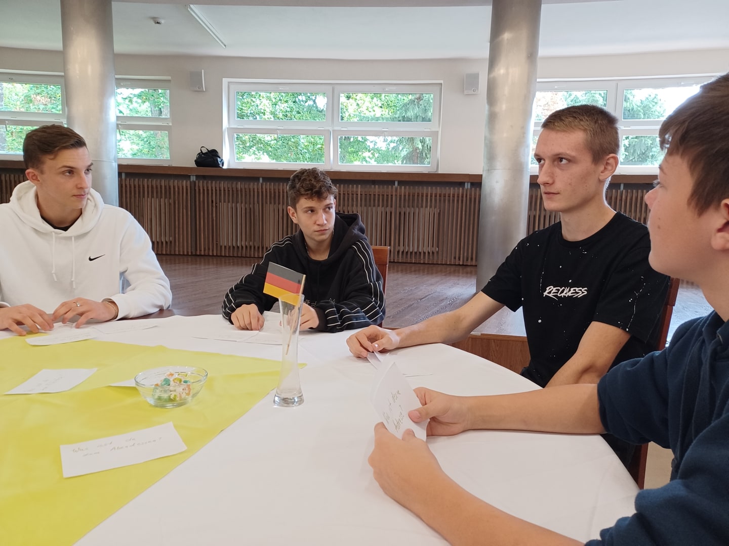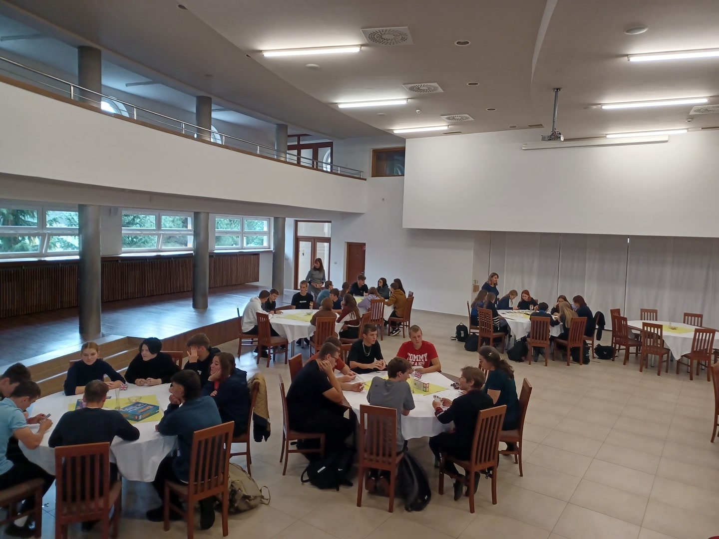 Od roku 2001 je 26. september vyhlásený za Európsky deň jazykov. Naša škola každoročne pripravuje v tento deň aktivity podporujúce výučbu cudzích jazykov. Tento rok si učitelia pripravili spoločenské hry v 4 cudzích jazykoch na rôznych jazykových úrovniach a študenti si takouto zábavnou formou precvičovali najmä komunikačnú zručnosť. Vo viacúčelovej sále boli pripravené okrúhle stoly a počas vyučovania mali učitelia možnosť prísť so svojimi triedami a zapojiť sa do pripravených hier. V sále bolo rušno a veselo a ozývala sa v nej angličtina, nemčina, francúzština či ruština od prvej po siedmu vyučovaciu hodinu. Tešíme sa, že náš Európsky deň jazykov 2022 mal pozitívnu odozvu, a dúfame, že aj ďalšie dni jazykov budú tvorivé a radostné.