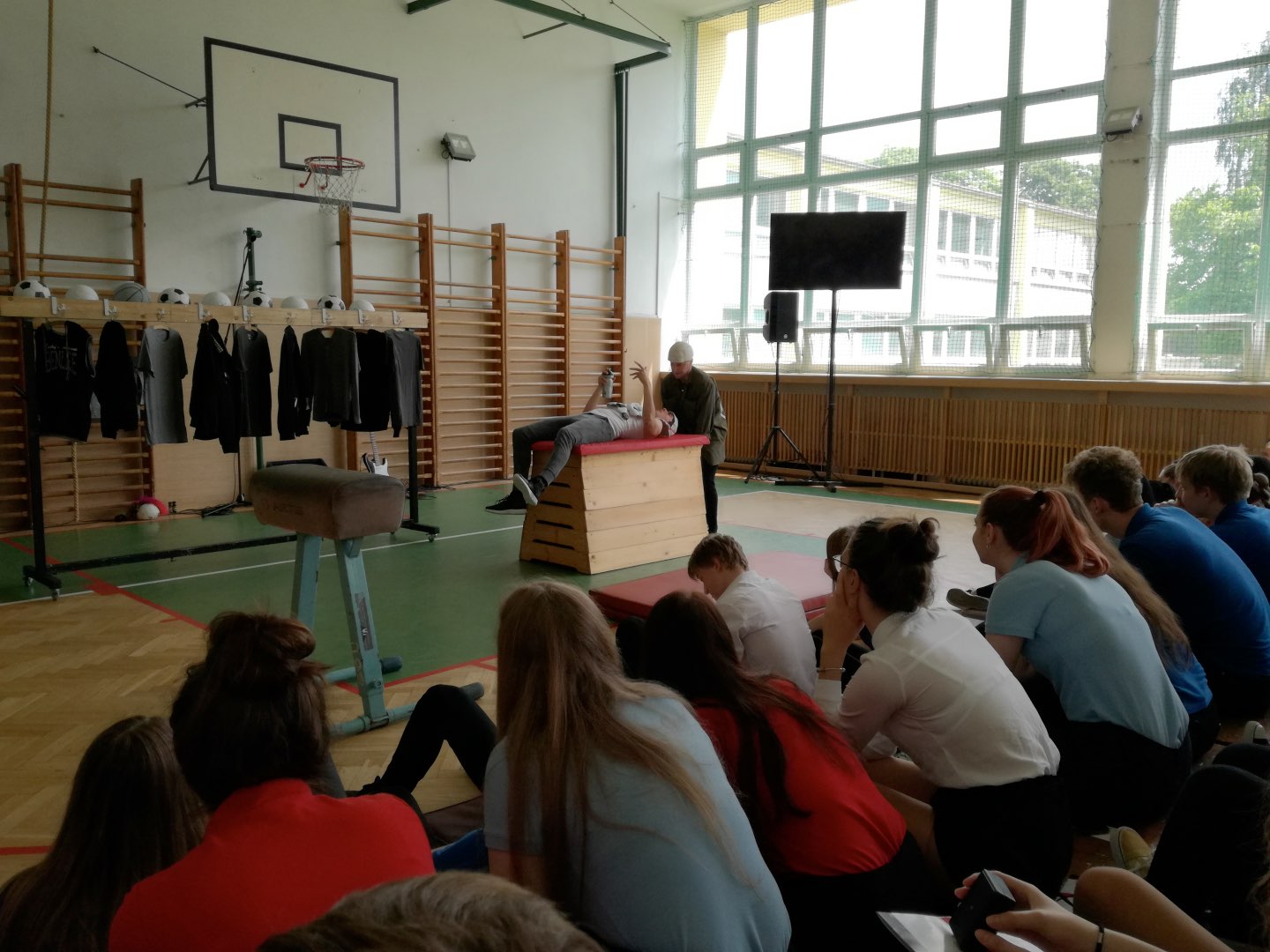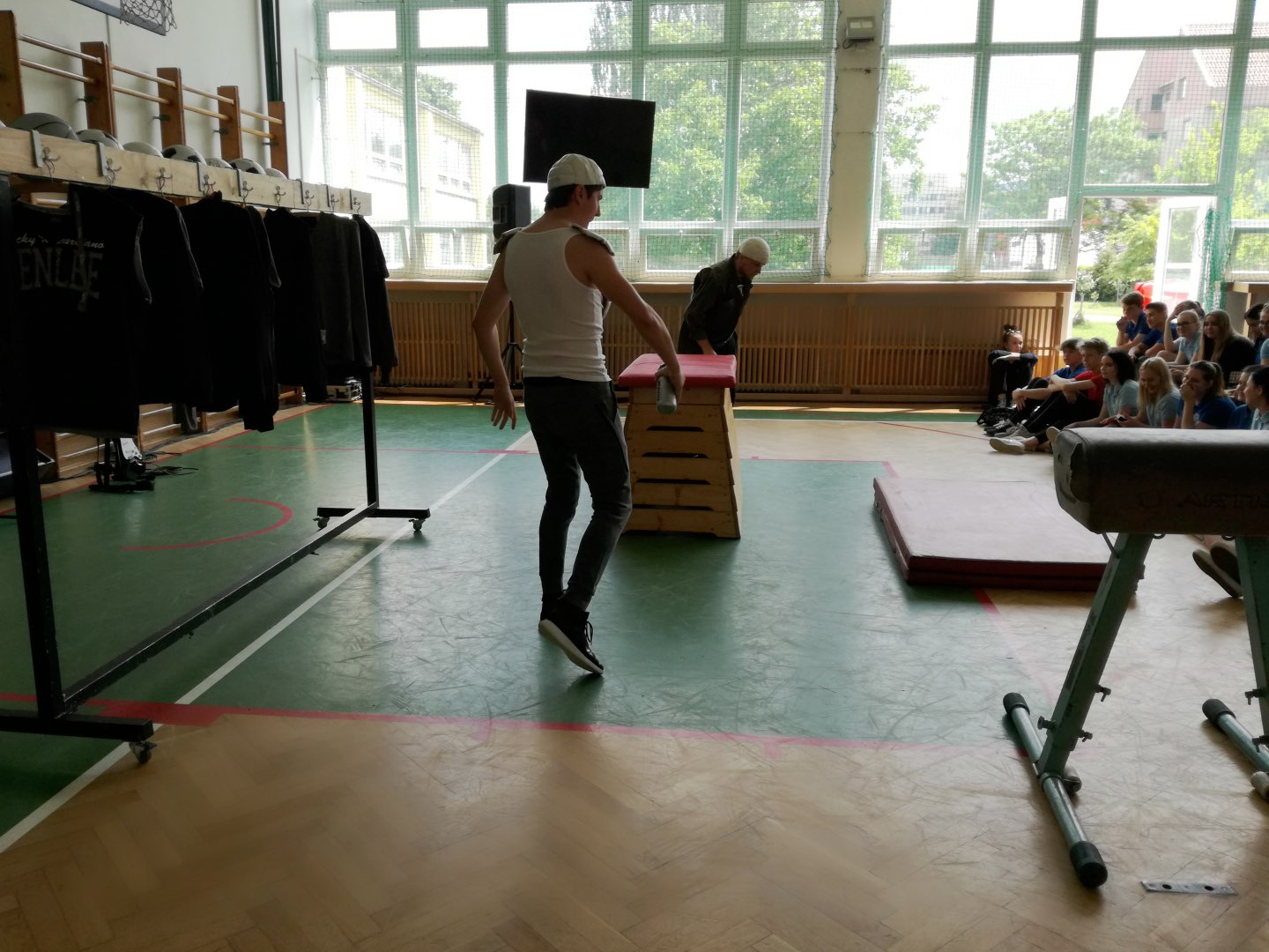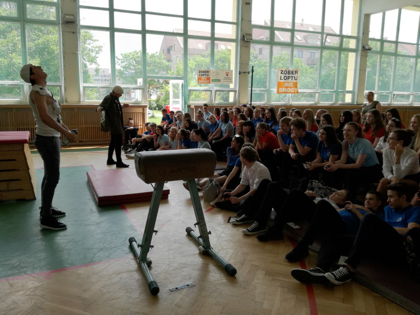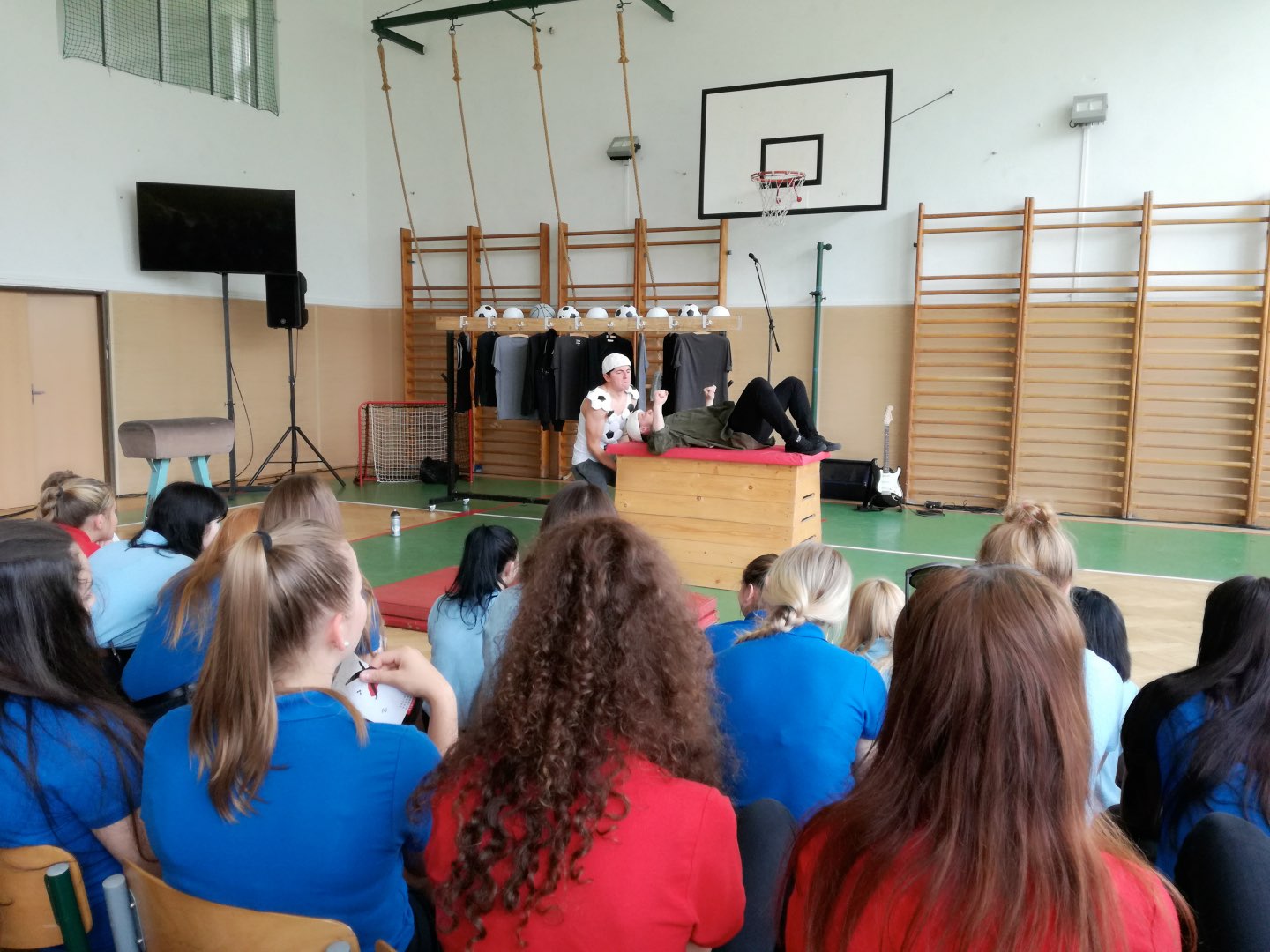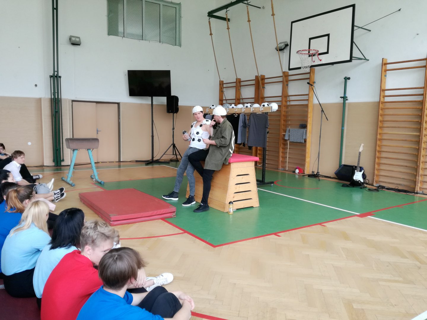 Edu-hra HOAX sa venuje téme mediálnej výchovy a extrémizmu a Divadlo Andreja Bagara ju prinieslo pre našich študentov priamo do našej školskej telocvične.