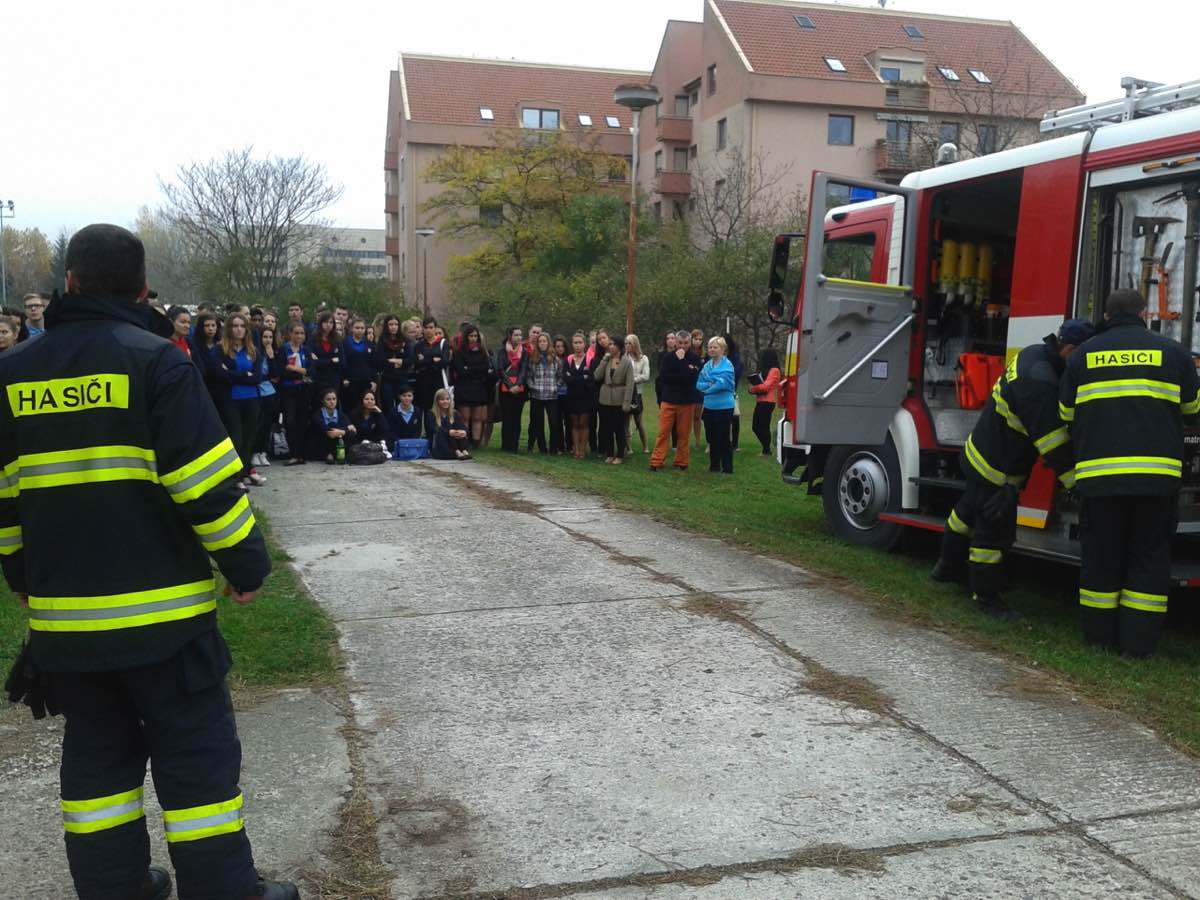 Vyskúšali sme si, ako rýchlo vieme opustiť školu. A toto nám ide naozaj dobre. Po vyhlásení poplachu nám trvalo menej ako 5 minút a škola bola úplne prázdna. Aby bola ilúzia ohrozenia dokonalá, privolaní hasiči predviedli našim žiakom možnosti a použitie modernej požiarnej techniky.