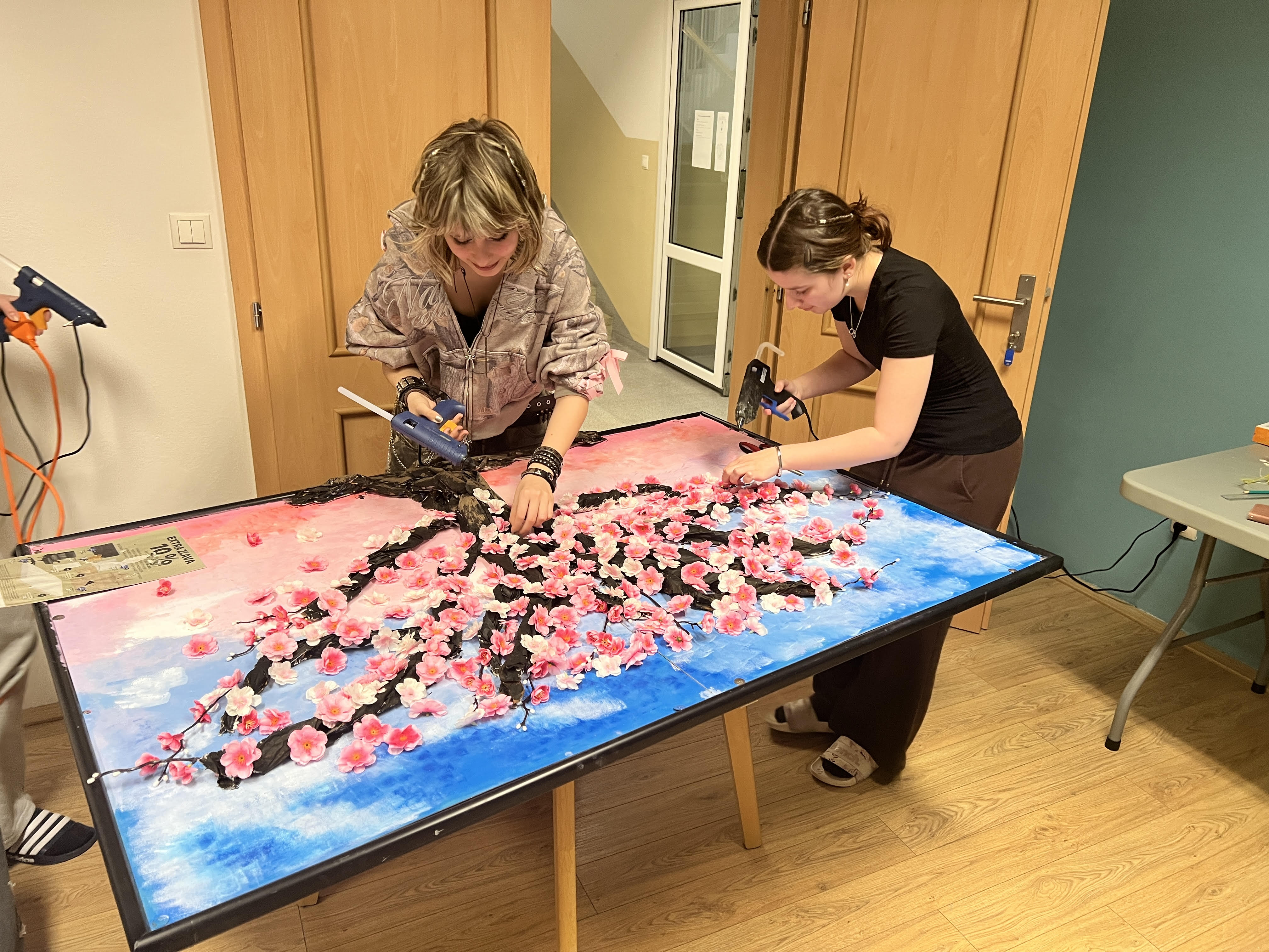 S príchodom jari žiaci internátu spoločne vytvorili originálnu nástenku s motívom rozkvitnutej sakury. Plastické kvety a motýle vytvárajú krásny 3D efekt a symbolizujú nové začiatky, radosť a priateľstvo. Strom zároveň pripomína hodnoty, ktoré sú pre život na internáte dôležité – pomoc, úsmev, priateľstvo a rešpekt. Nápis „Internát – druhý domov“ vystihuje atmosféru spolupatričnosti medzi žiakmi.
