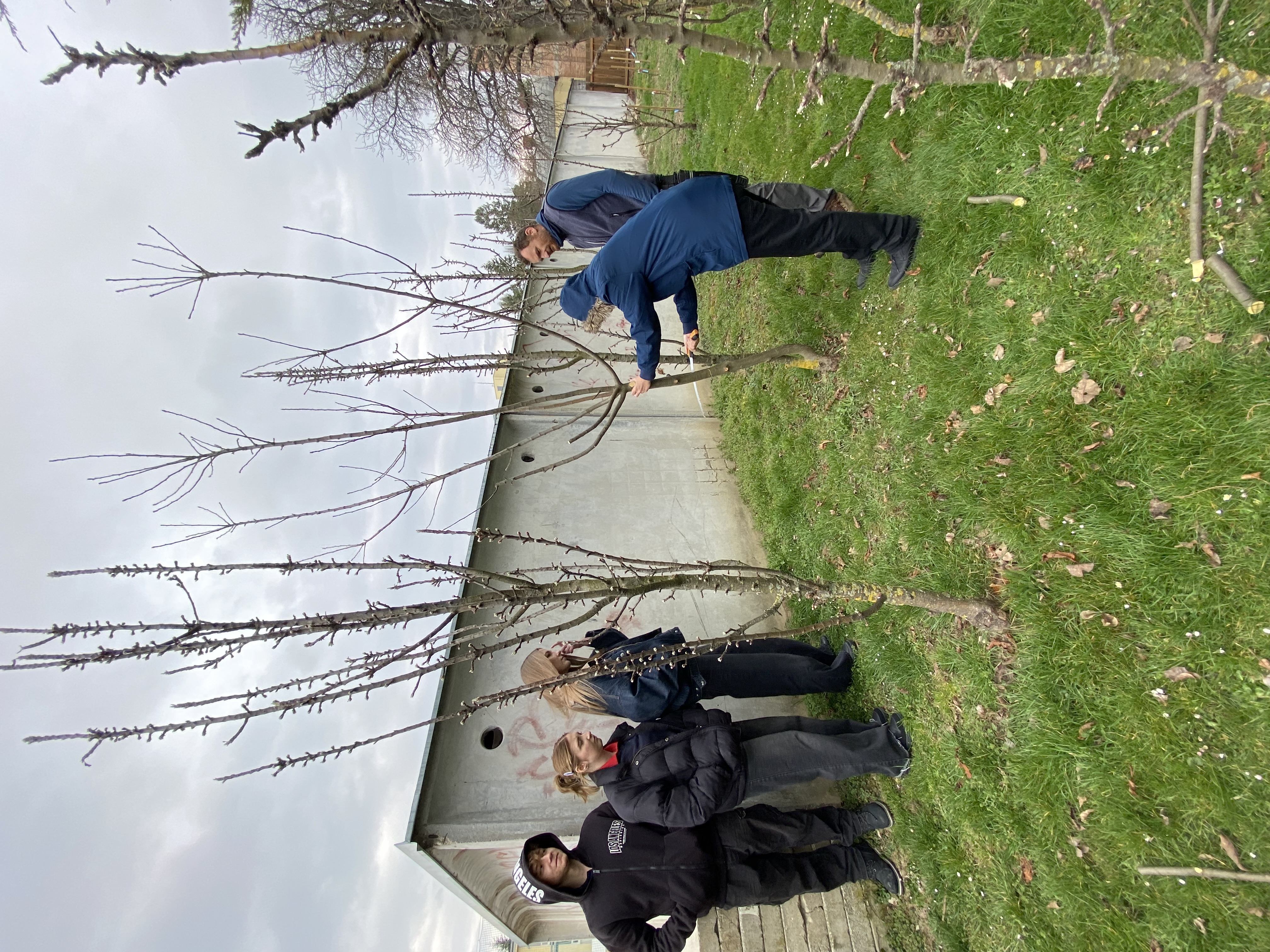 Jarné strihanie ovocných stromov na školskom dvore