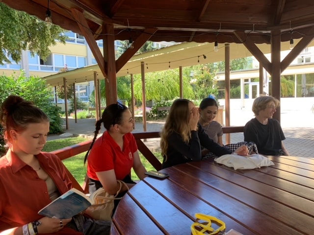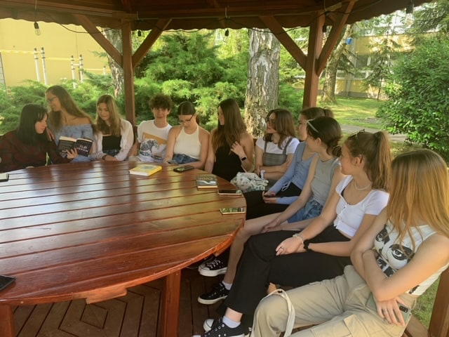 Posledné dni šk. roka 2021/2022 si žiaci 1. ročníka spestrili denné aktivity letnou literárnou čitárňou v príjemnom prostredí areálu školy. Čítali knihy od súčasných slovenských prozaikov podľa výberu žiakov.