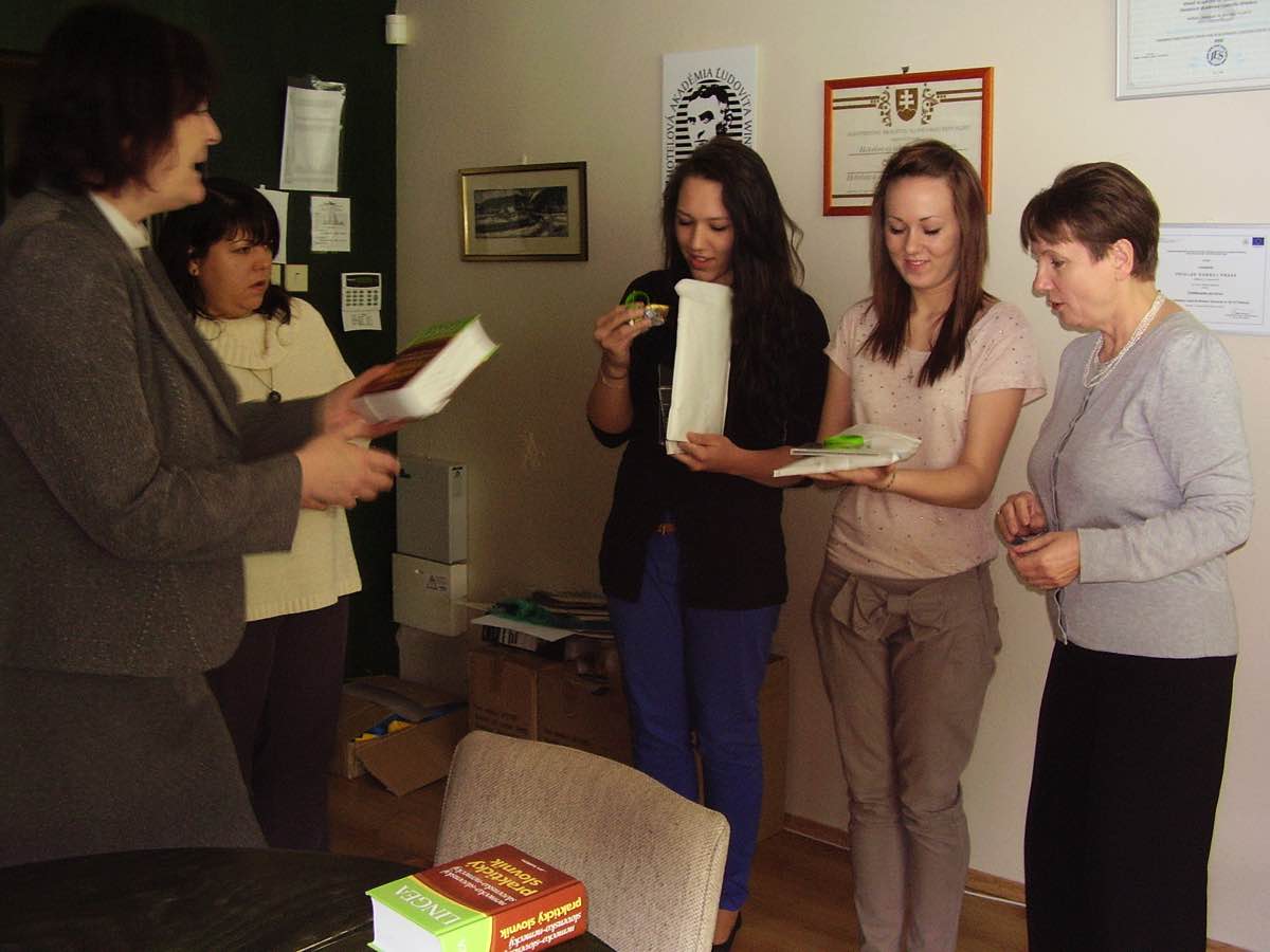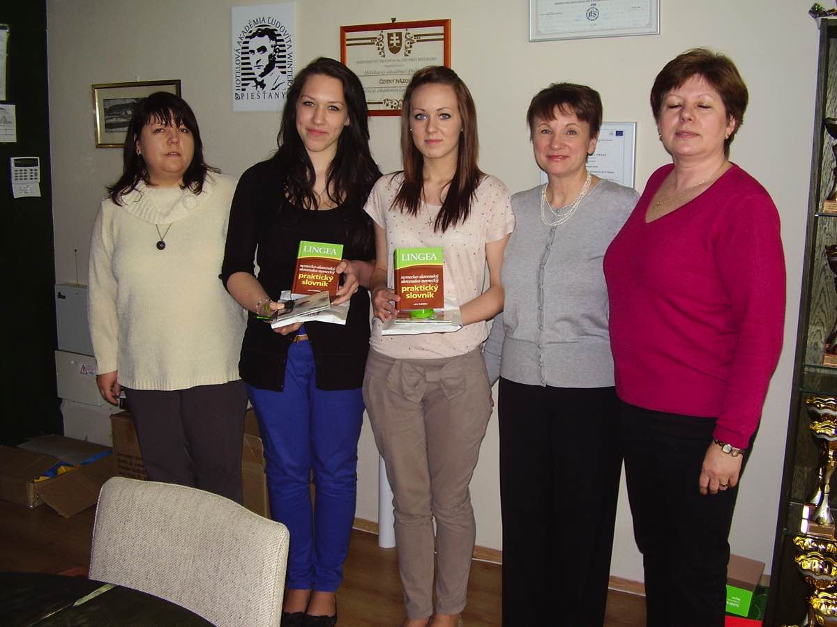 Vom 10.10.2011 bis 31.01.2012 fand ein Wettbewerb des Slowakischen Deutschlehrerverbandes statt. Bei " Alles Deutsch oder was?" machten sich die Schueler der I.A und I.B Klassen auf die Suche nach deutschen Woertern in der slowakischen Sprache. Ihre Ergebnisse präsentierten sie auf kreative Art und Weise.