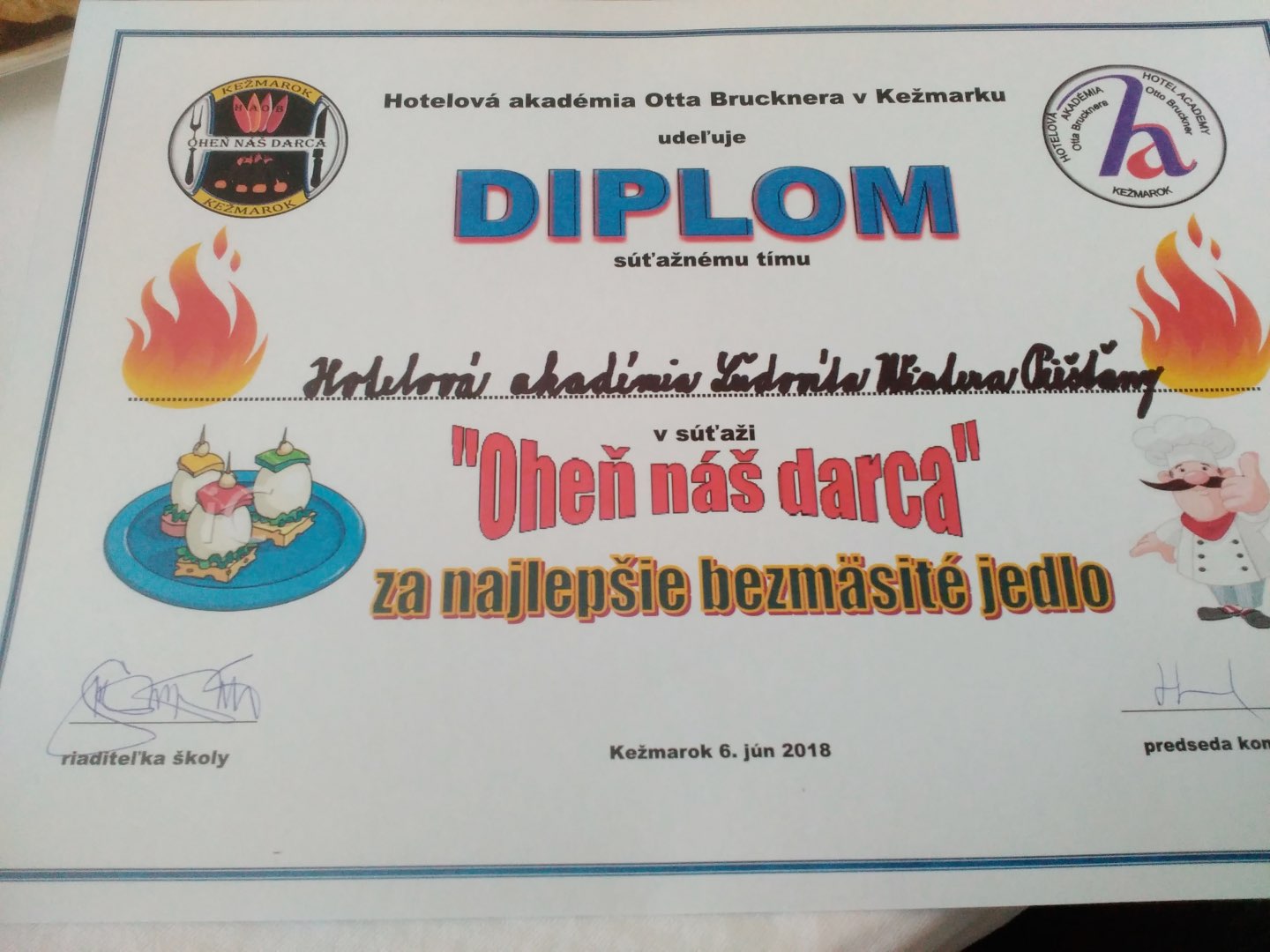 Naši súťažiaci žiaci získali ocenenie za najlepšie bezmäsité jedlo pripravované na grile. Hotelovú akadémiu reprezentovali Erik Machovič 3.C, David Kondrc 4. B a Denisa Nečníková 2.D.