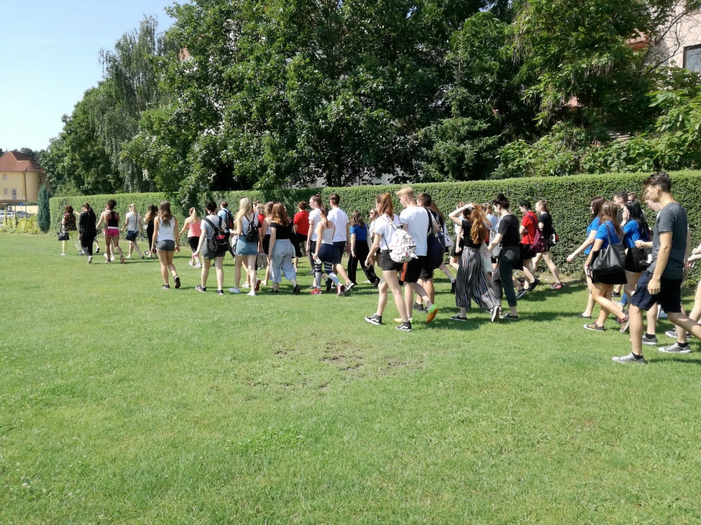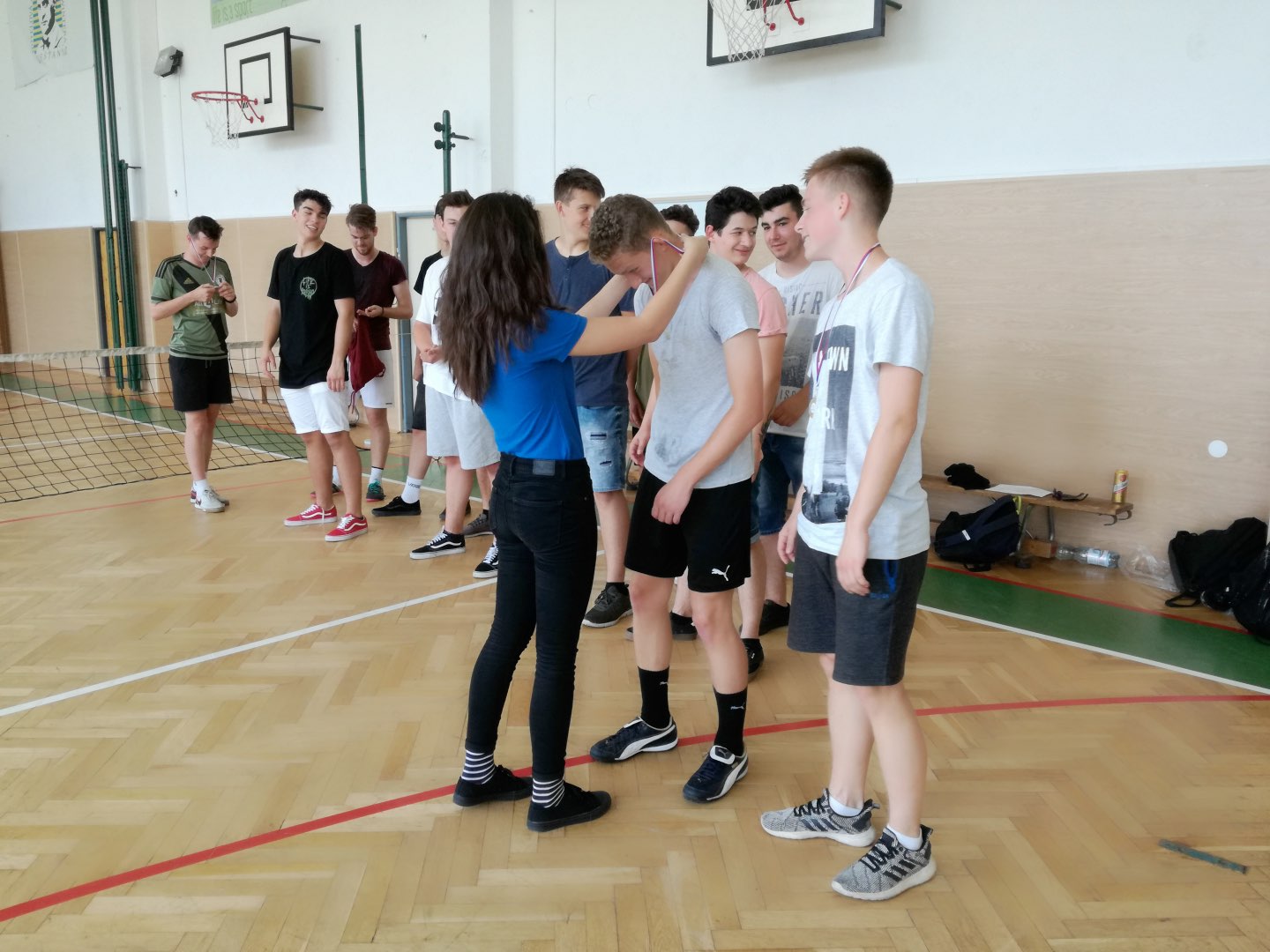 štafetový beh 4 členných družstiev / v peknom prostredí pieštanského parku/- zvíťazila I.B trieda v zložení: Drličková Zuzana, Lehotska Olívia, Jankovichová beatw, Kubica Dábid/. Druhé miesto si vybojovala I.D trieda /Bobčeková Klára, Machovič Martin, Némethová Tereza, Trevisan Chiara/ a na treťom mieste skončila II.A trieda /Čopová Timea, Kurovská Kristína, Šebeňová Lívia, Uhlík Viktor/