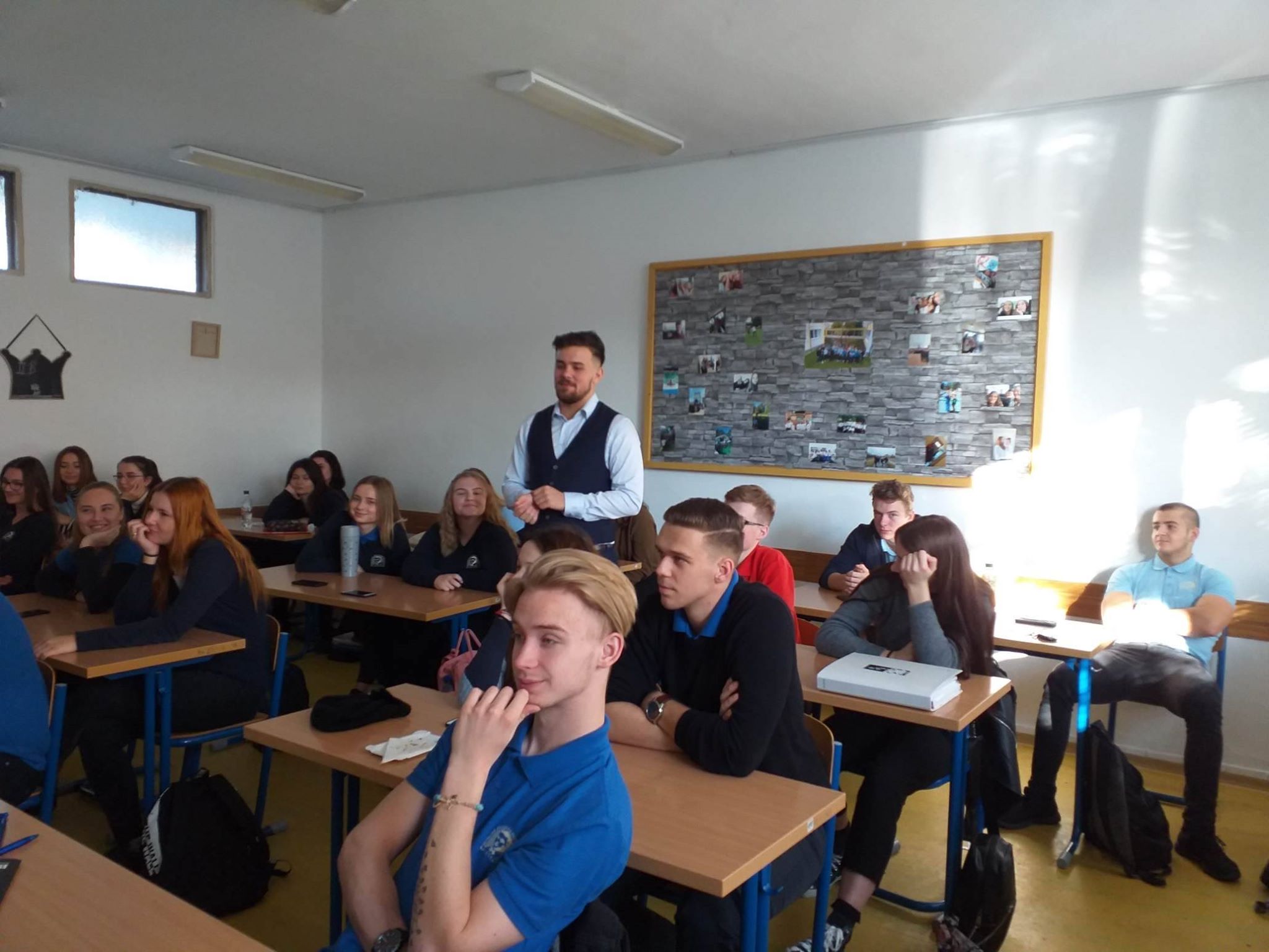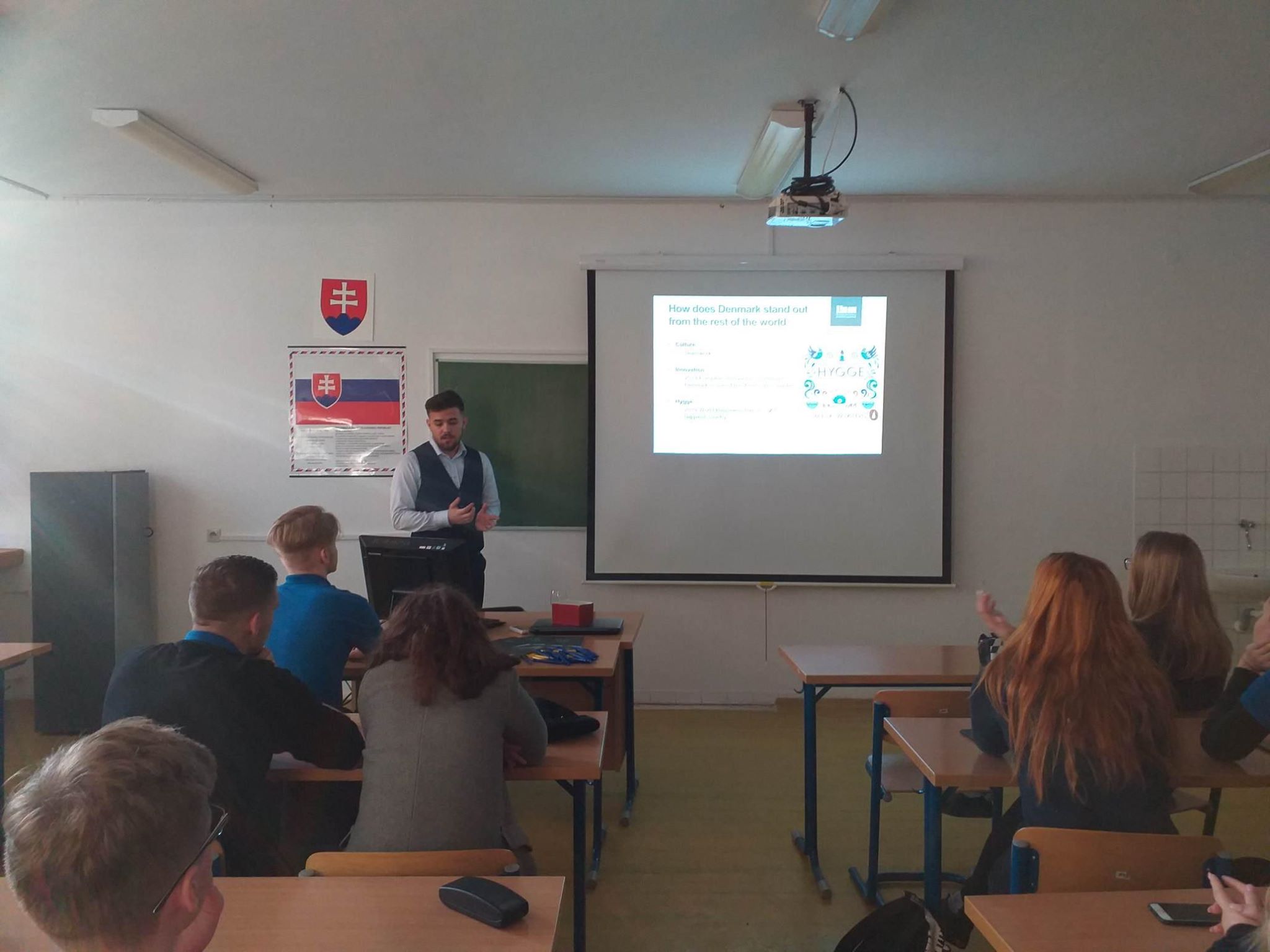 Vo štvrtok 14. 11. 2019 sa do našej školy vrátil veľmi úspešný absolvent Jakub Matejovič, ktorý študentom prednášal o štúdiu v Dánsku. Študuje na IBA Kolding. Predstavil študentom túto vysokú školu, porozprával o systéme výučby i možnostiach práce v mestečku Kolding. Naši študenti sa dozvedeli veľmi zaujímavé informácie priamo od študenta, ktorého mnohí z nich poznajú z predchádzajúcich rokov štúdia.