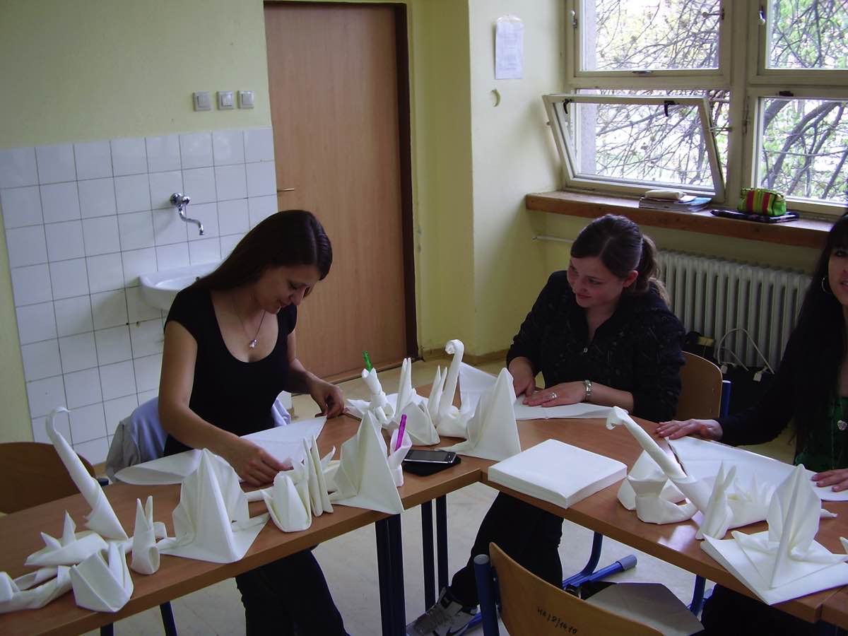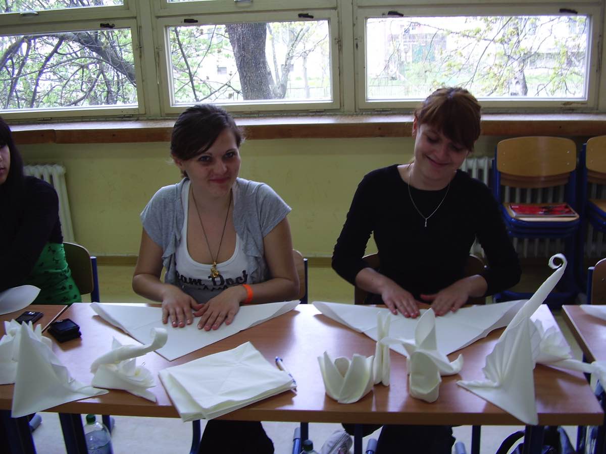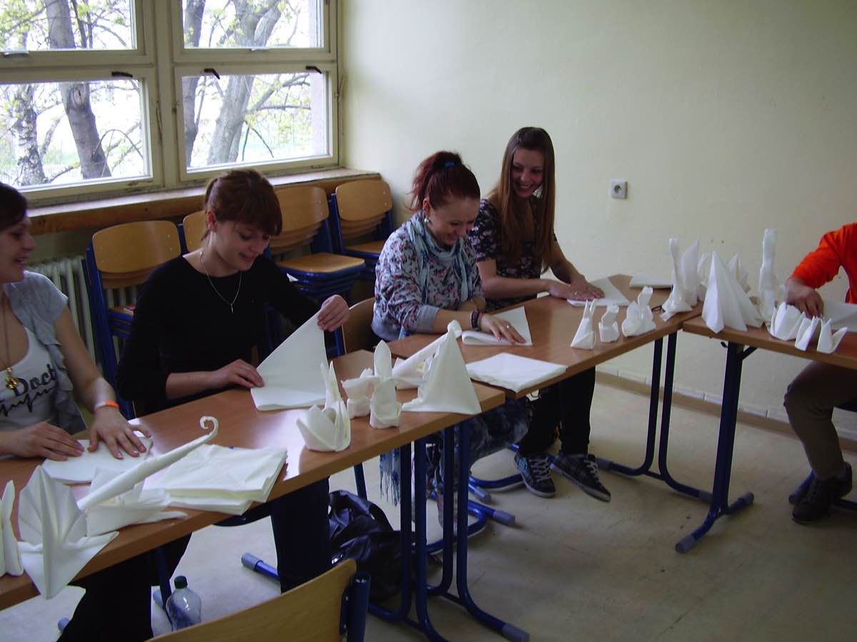 Dňa 15. 04. 2011 sa na našej škole uskutočnil kurz skladania servítkov. Zúčastnili sa ho vybraní študenti z tried prvého , druhého a tretieho ročníka. Takmer dve hodiny sme strávili s pani Barborou Kubíkovou – zástupkyňou spoločnosti DUNI, ktorá nám ukázala najnovšie trendy v skladaní servítkov. Táto spoločnosť, v ktorej pani Kubíková pracuje produkuje servítky, na ktorých sme sa učili skladať. Napriek tomu, že kurz netrval dlho, naučili sme sa poskladať rôzne skladačky zo servítkov ako napr. veľkonočného zajačika či mikulášsku čižmičku a množstvo iných inšpirácií, ktoré sme doposiaľ nepoznali. Bolo to pekne strávené doobedie v škole, počas ktorého sme sa zase a znovu niečo nové naučili.