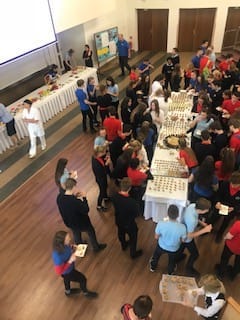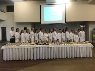 Jedlá zostavili z regionálnych surovín oboch krajín. Predstavenie jedál a degustácia prebiehali v aule školy za prítomnosti žiakov 1. ročníka.