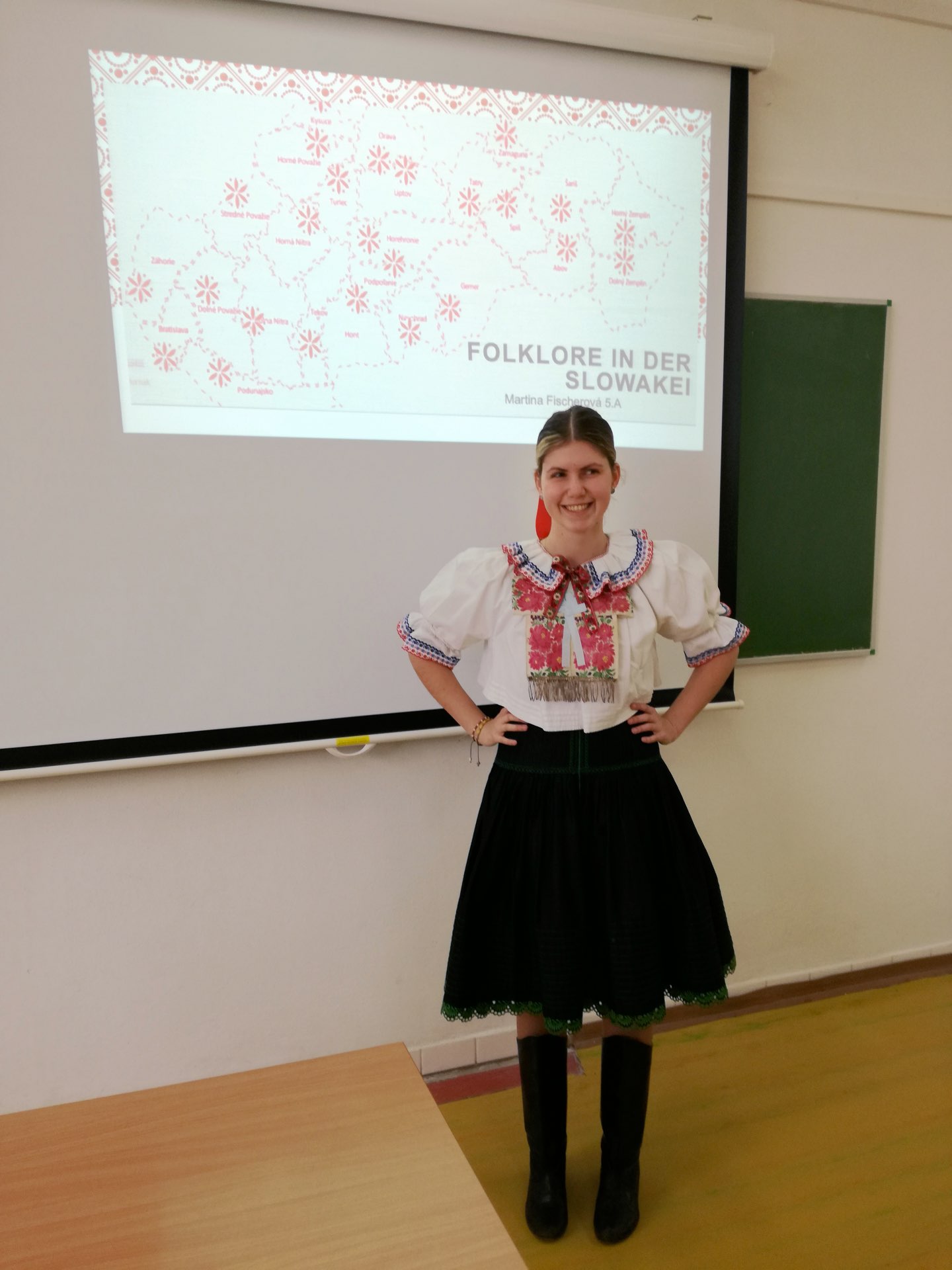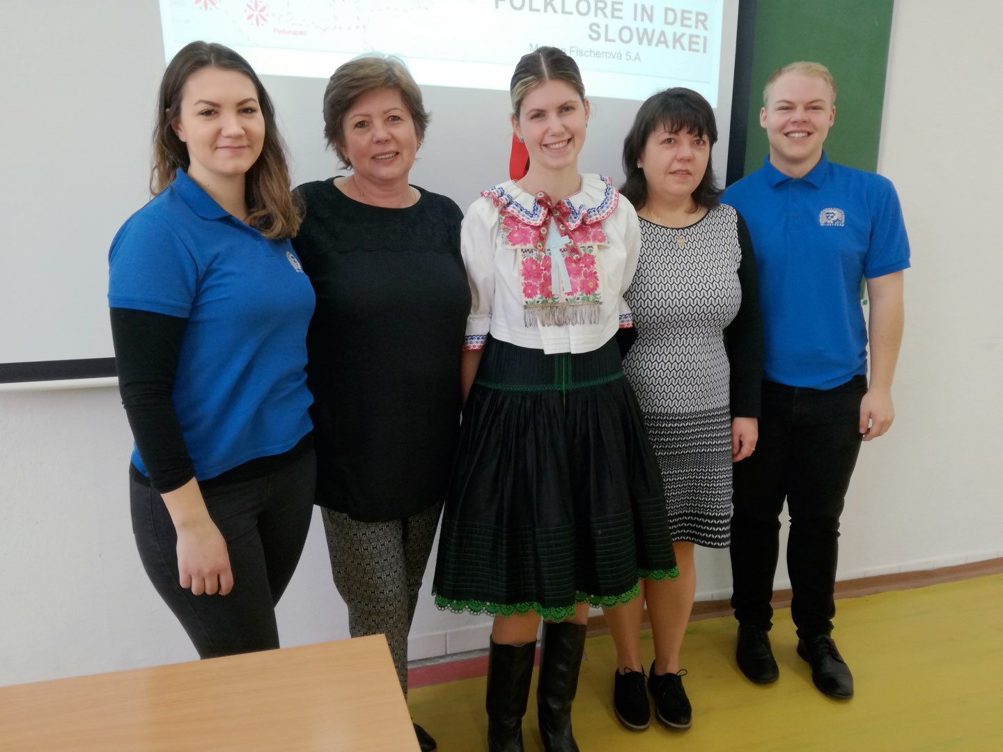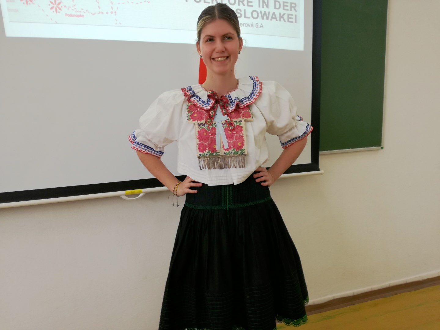 Dňa 11. 4. prebiehala na škole ústna časť nemeckej jazykovej skúšky Sprachdiplom. Zúčastnilo sa jej 13 žiakov zo 4.C, 5.A a 5.B triedy. Súčasťou ústnej skúšky je prezentácia vybranej témy, napr. Slovenský folklór, ktorý prezentovala Martina Fischerová z 5.A.