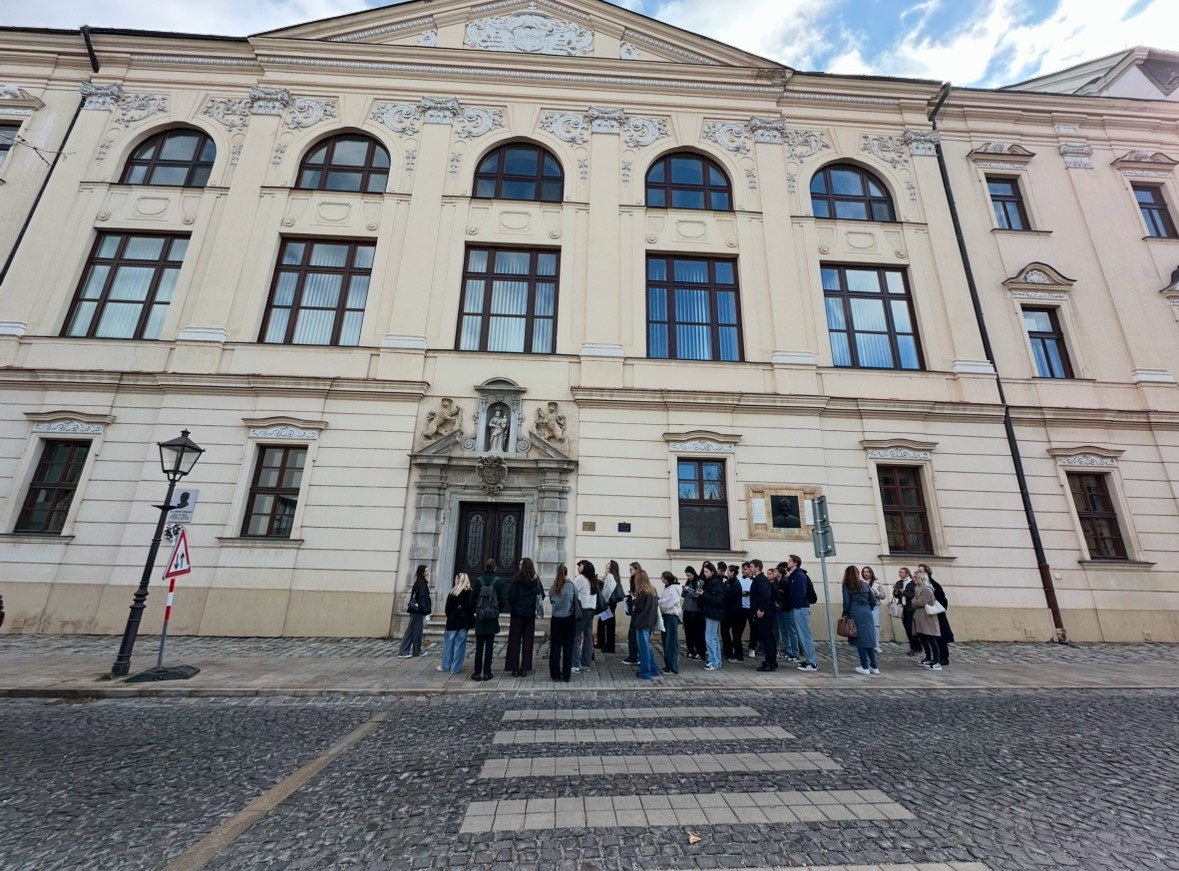 V rámci predmetu sprievodcovstva sme navštívili Piešťany a Trnavu, pričom úlohy sprievodcov prevzali samotní študenti. V Piešťanoch nás previedli históriou kúpeľov a ikonickým Kolonádovým mostom. V Trnave sme objavovali sakrálne pamiatky a univerzitné tradície. Exkurzia bola skvelou príležitosťou spojiť učenie s praxou a získať cenné skúsenosti.