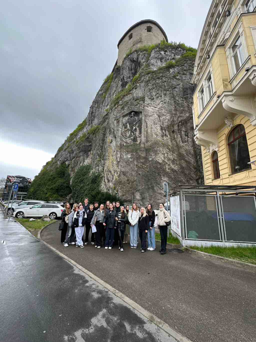 Dňa 15.4.2025, kedy sa 4.A zúčastnila sprievodcovania po Trenčíne, aj napriek nepriaznivému počasiu sme to úspešne zvládli a získali sme nové informácie o historických pamiatkach v Trenčíne a úspešne sme vyskúšali na vlastnej koži.