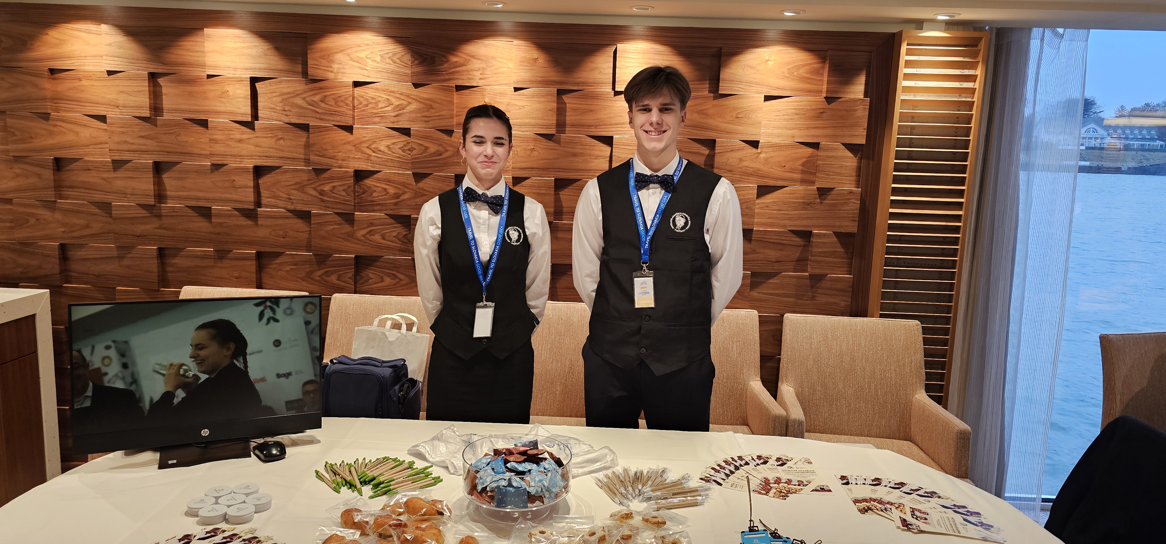 V dňoch 4. - 5. 2. 2026 sa žiaci našej školy zúčastnili prezentačného podujatia Študuj cestovný ruch v Osobnom prístave Bratislava na lodi Viking River Cruises AG. Cieľom podujatia je zvýšiť záujem žiakov o štúdium cestovného ruchu na stredných a vysokých školách a o prácu v tomto sektore. Podujatie reaguje na nedostatok kvalifikovaných zamestnancov v oblasti cestovného ruchu, pričom absolventi štúdia majú široké možnosti uplatnenia. Návštevníkom sme prezentovali našu školu a predstavili predmety výučby. Zároveň sa mohli zúčastniť prehliadky výletnej lode Viking River Cruises AG, ktorá do Bratislavy priplávala z prístavu vo Viedni. Prehliadku realizovala naša absolventka, ktorá popísala ako ich budúca kariéra na lodi môže prebiehať, predstavila jednotlivé pracovné pozície a pracovnú dobu. Odhadovaný počet za obidva prezentačné dni je cca 300 návštevníkov.