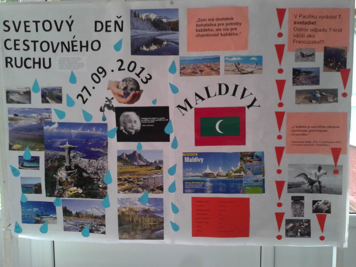 Dňa 30. septembra 2013 sme si pripomenuli Svetový deň cestovného ruchu viacerými aktivitami. Žiaci 1. ročníka VOŠ sa zúčastnili prednášky v mestskej knižnici s tematikou CR pre telesne postihnutých. Žiaci 2. ročníka VOŠ pripravili informácie pre všetkých študentov o význame a charaktere Svetového dňa CR. Žiaci 3. ročníka VOŠ zorganizovali pre študentov 1. ročníka 5-ročného štúdia interaktívnu prednášku na tému Cestovný ruch a voda. Po jej ukončení sa mohli noví žiaci viac dozvedieť počas sprevádzania po zaujímavých miestach v Piešťanoch.