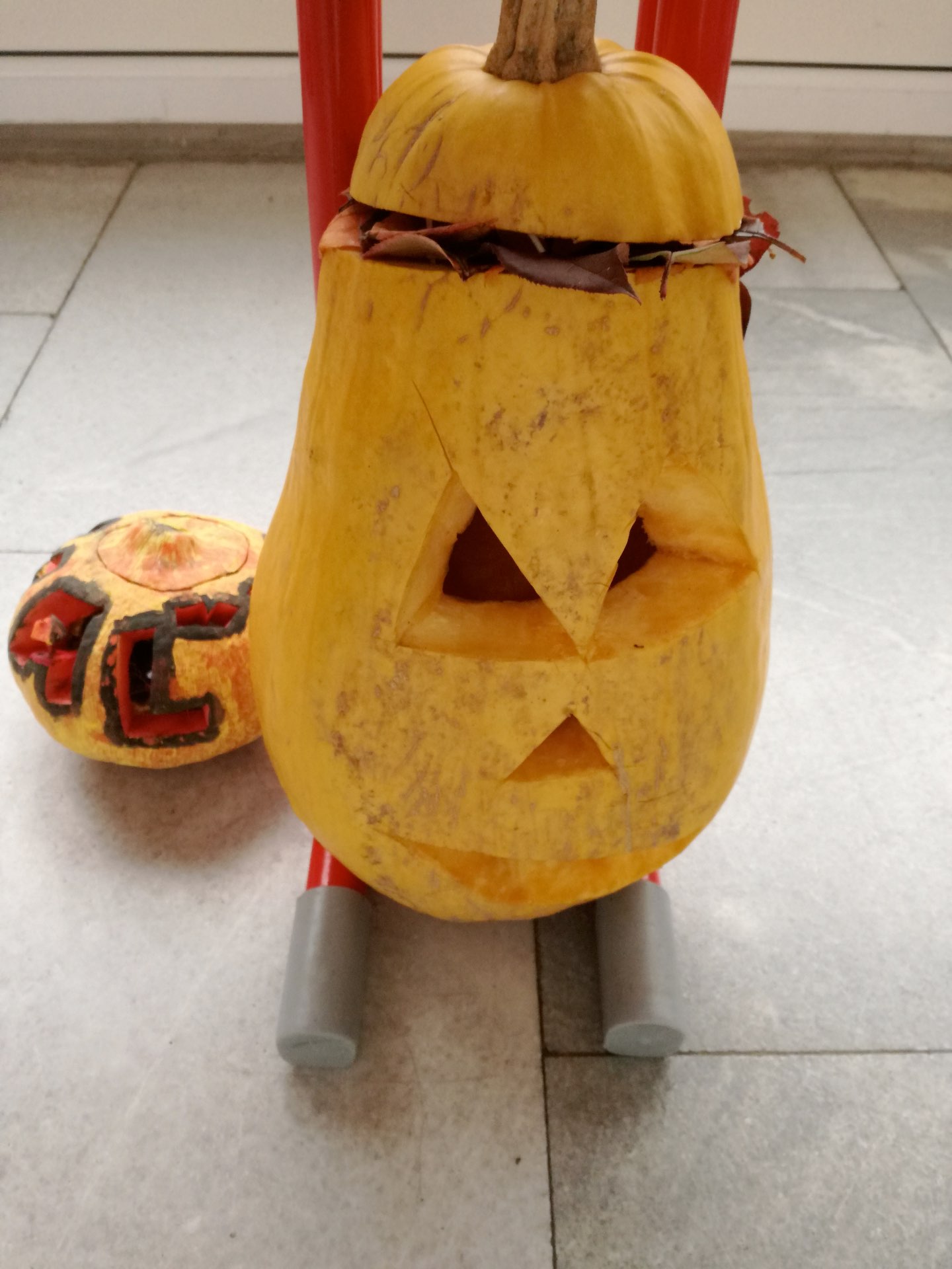 3. miesto: tekvica číslo 12 - zhotovili ju: Šulka Anrej 3.D, Krakovik Jakub 2.C, Precner Ľuboš 3.D.