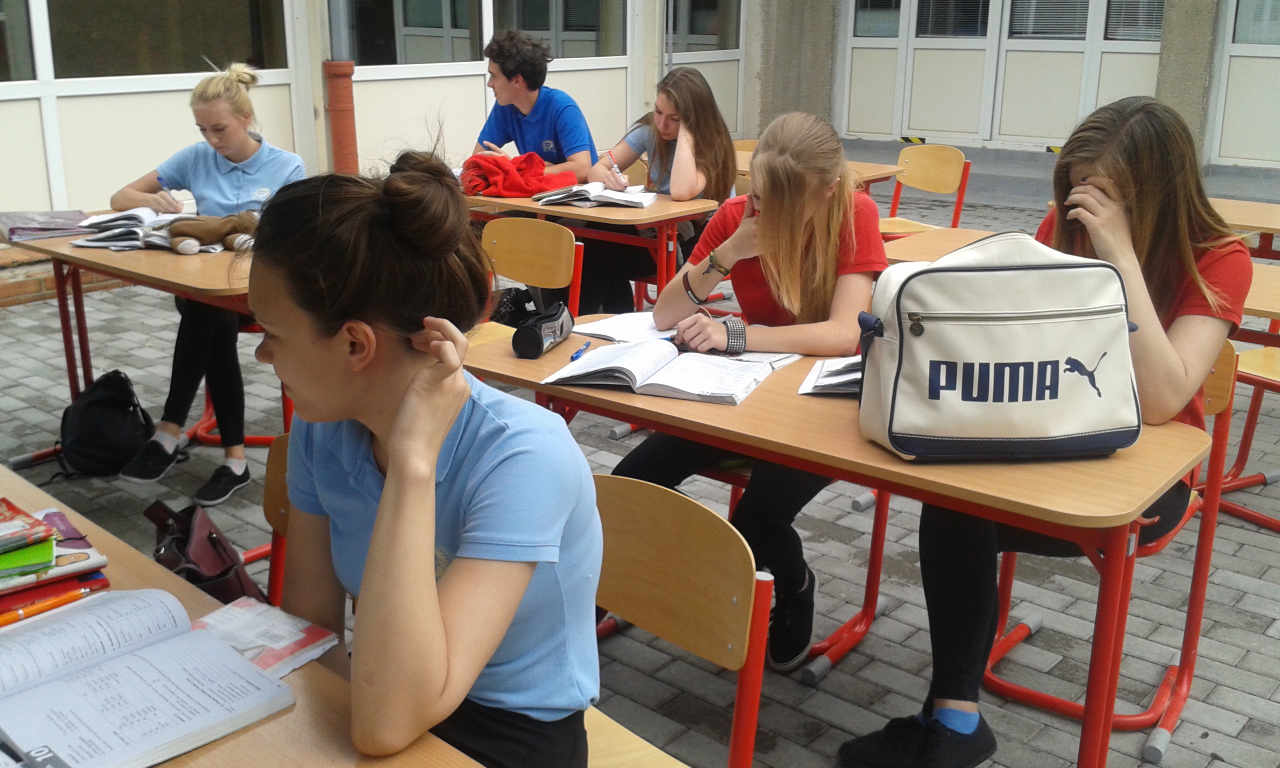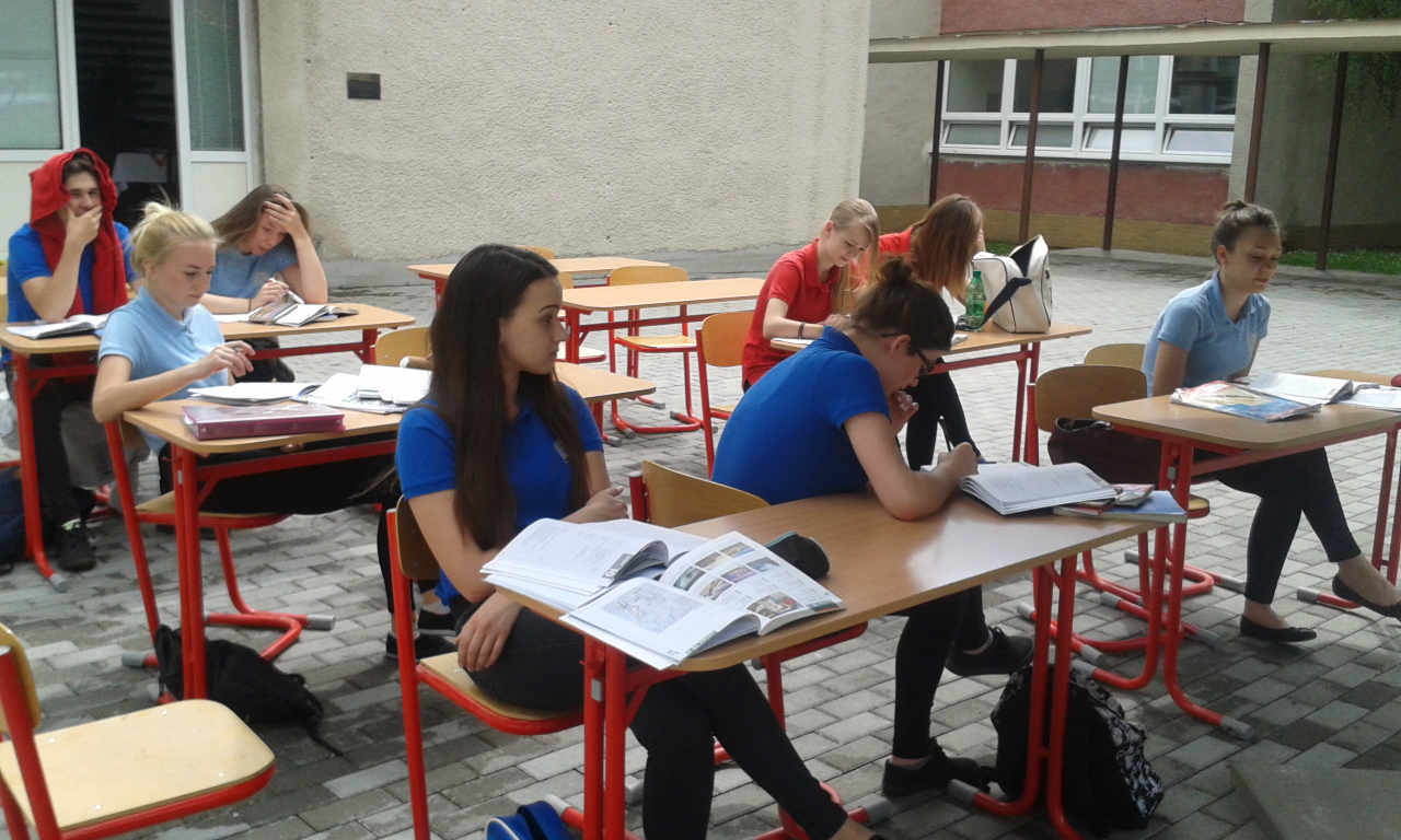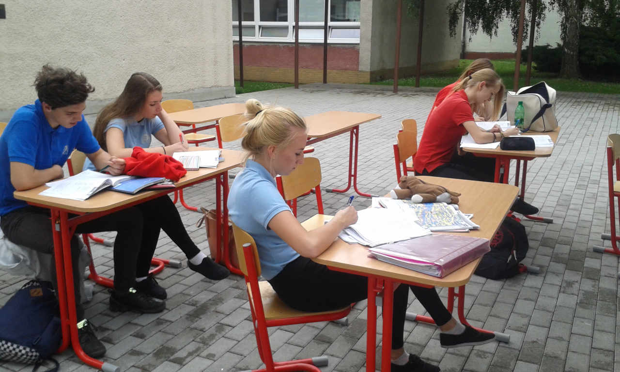 Na spestrenie vyučovania počas teplých lelných dní sme zriadili pre našich žiakov triedu open air. V príjemnom prostredí átria školy sa žiakom lepšie nadobúdajú vedomosti na vyučovacích hodinách.
