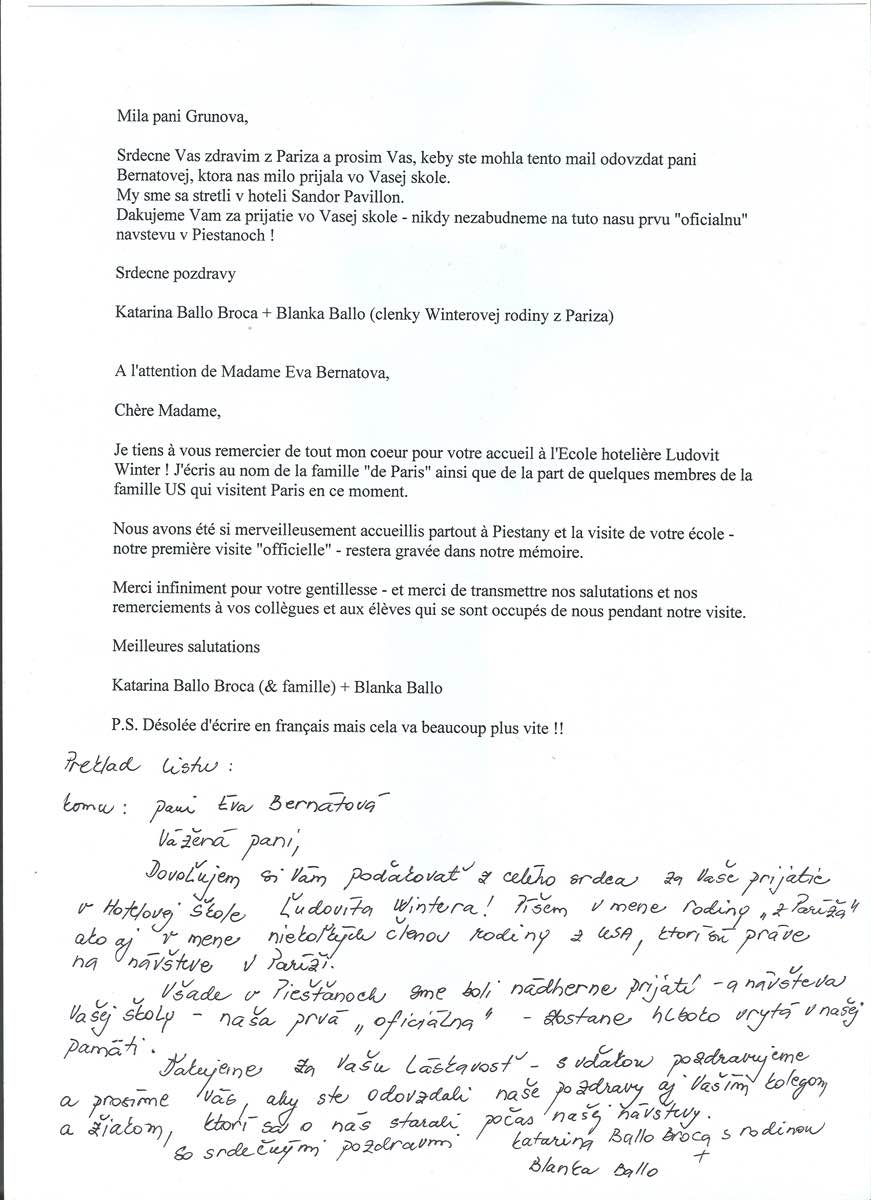 Program stretnutia rodinných príslušníkov rodiny Winterovcov v Piešťanoch sa začal vo štvrtok 19. mája návštevou Hotelovej akadémie Ľudovíta Wintera. Mgr. Bernátová oboznámila rodinu Winterovcov s históriou školy, programom vzdelávania aj s úspechmi, ktoré dosiahli naši študenti v poslednom období. Pre rodinu Winterovcov sme pripravili posedenie s malým pohostením a prehliadku výučbových priestorov školy.